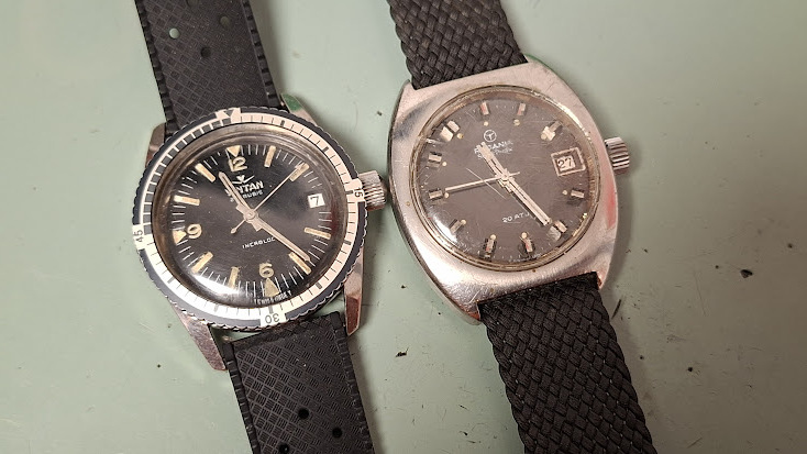 Aangevuld met een Italiaanse Vintan diver, die ook loopt en waarvan de datum ook verstelt, alleen op het verkeerde uur.