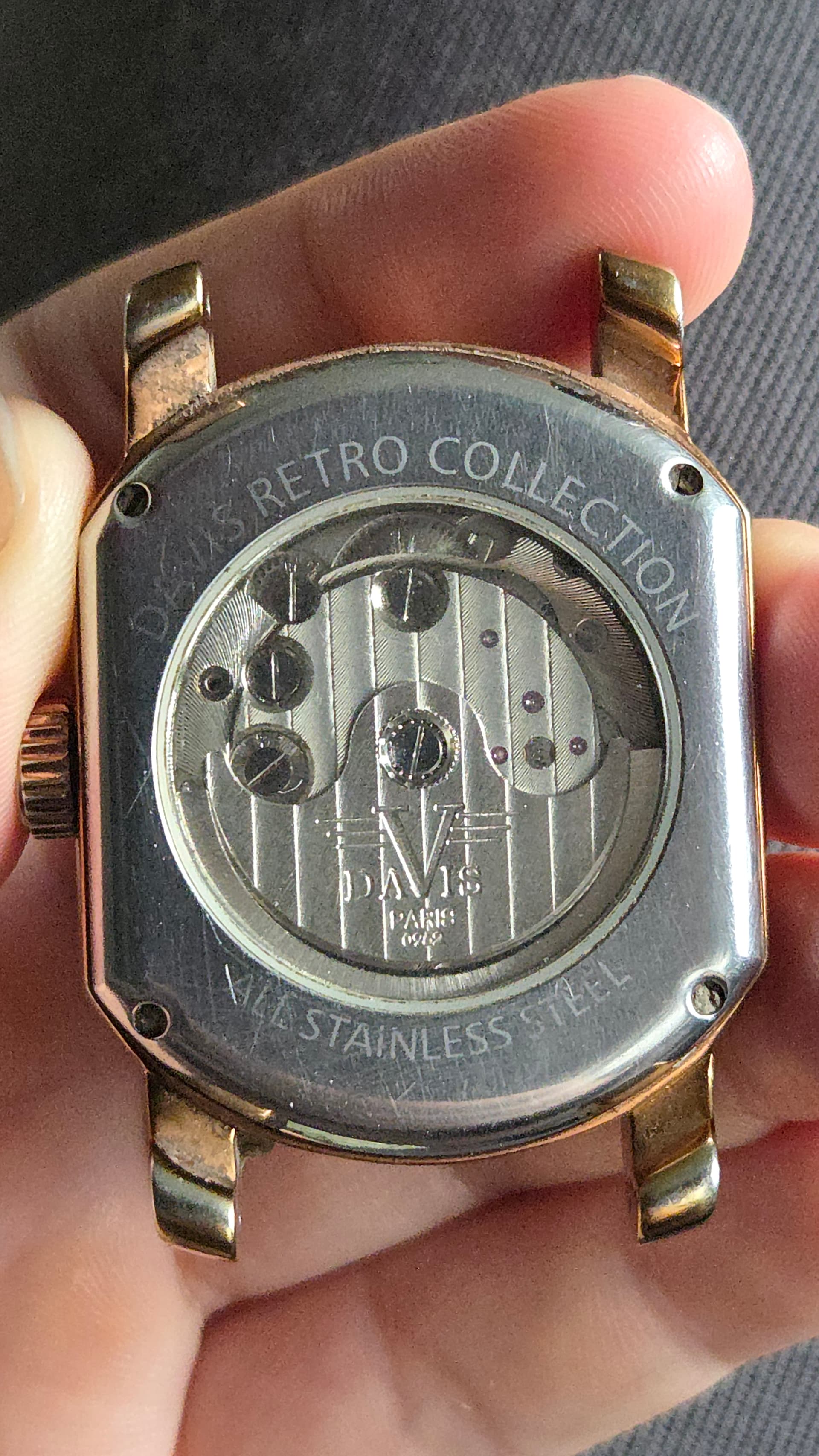 En de laatste voor mijn voorlopige contributie in dit draadje. Een Davis Retro collection 0952. Vandaag voor 7 euro bij de kapotte horloges van een horlogeverkoper eruit gevist. Na opwinden deed ie het gewoon prima en de verkoper klonk ook vrij verbaast toen hij hier achter kwam