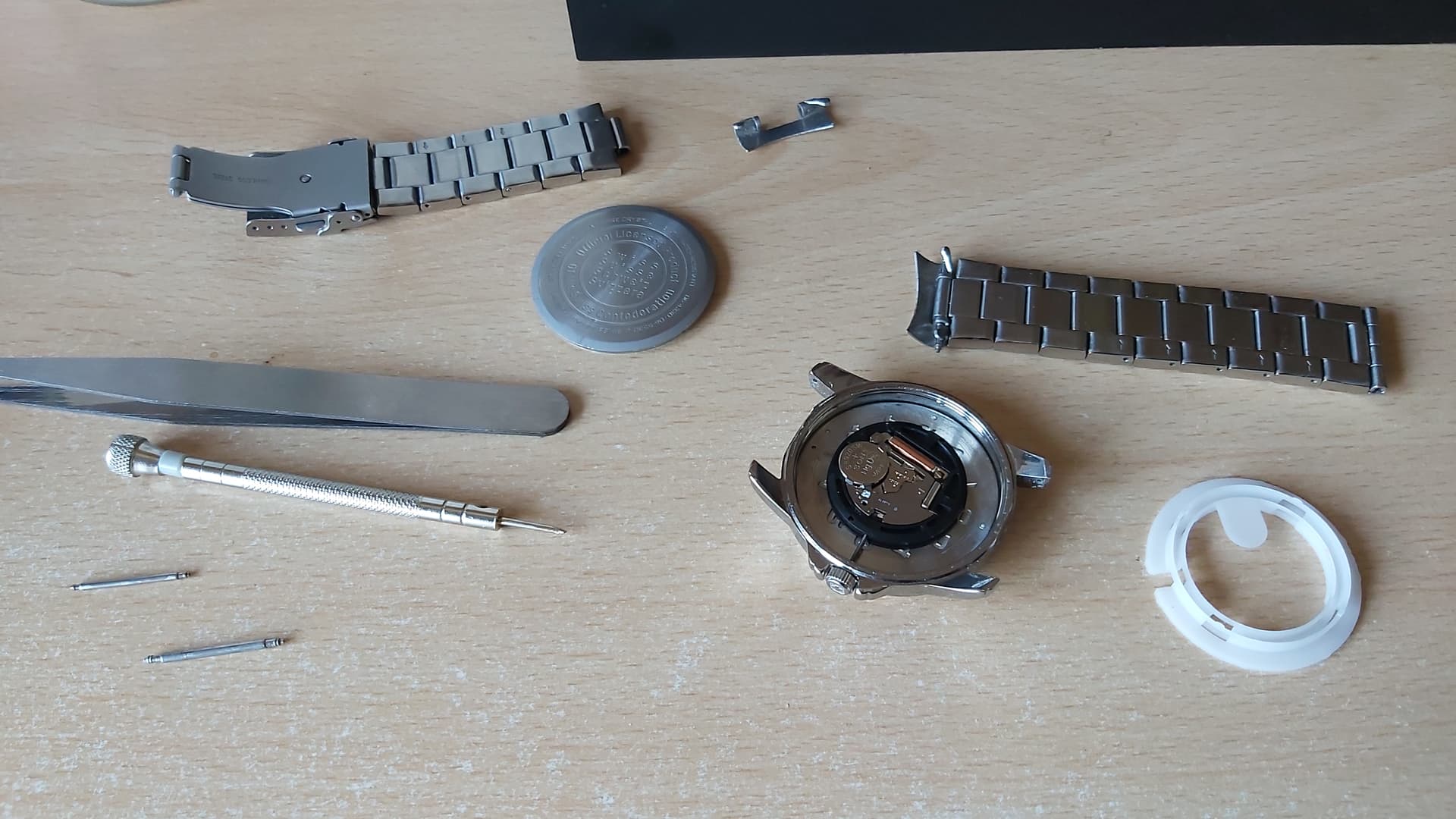 Ik los dingen graag zelf op. Goedkoper en zo leer je nog eens iets. Deze Hanowa heeft een snap-on caseback. In mijn goedkope gereedschapsetje zit gelukkig zo’n mesje.