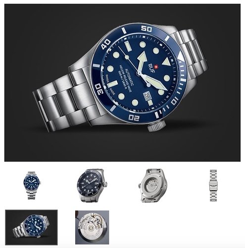 Ik vind wel dat dit horloge, de RUF500 Diver Automatic Blue/STL, er lollig uit ziet. Eigenlijk best wel mijn smaak hoewel 44mm op de pols een tikje overdreven zou kunnen zijn. ETA 2824 als aandrijver, moet goed zijn. 595 eurootjes, kan lager maar het klinkt niet raar. Keramisch inlegje en een HEV.