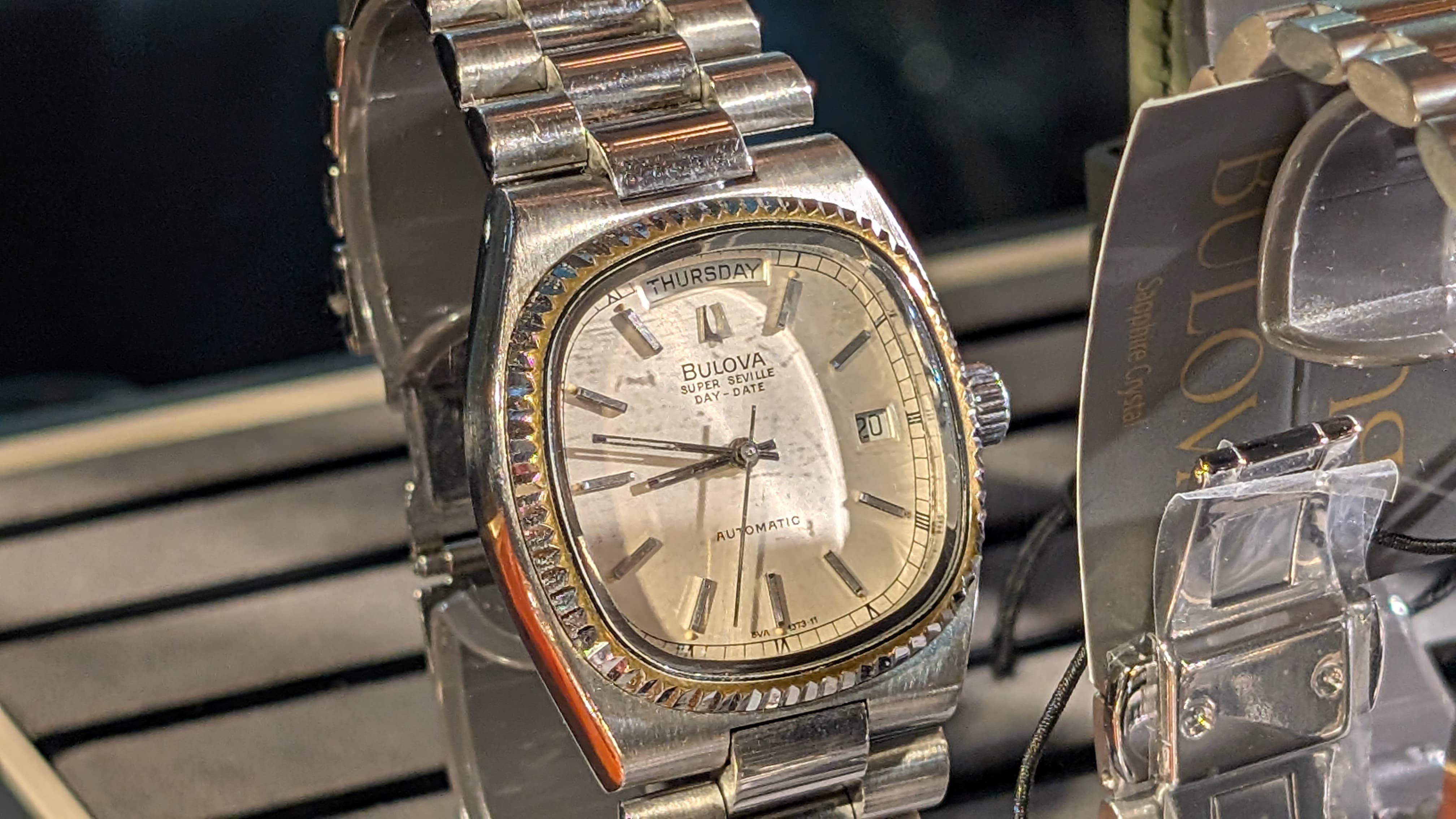 En, lo and behold, een verschijning die zeldzamer is dan kippentandjes: een TV model van de 1970s DayDate.
