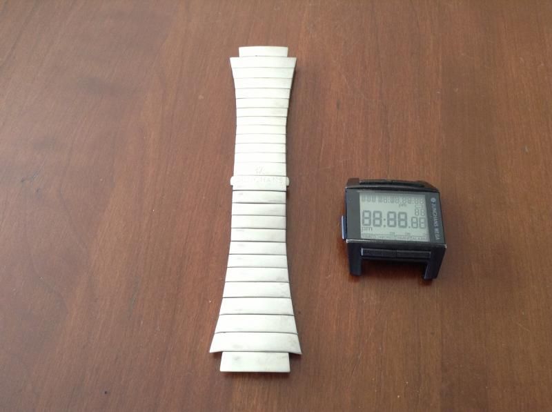 Dan ben ik gaan experimenteren, de gebruikte metalen polsband er af en de zwarte rubberen er op.