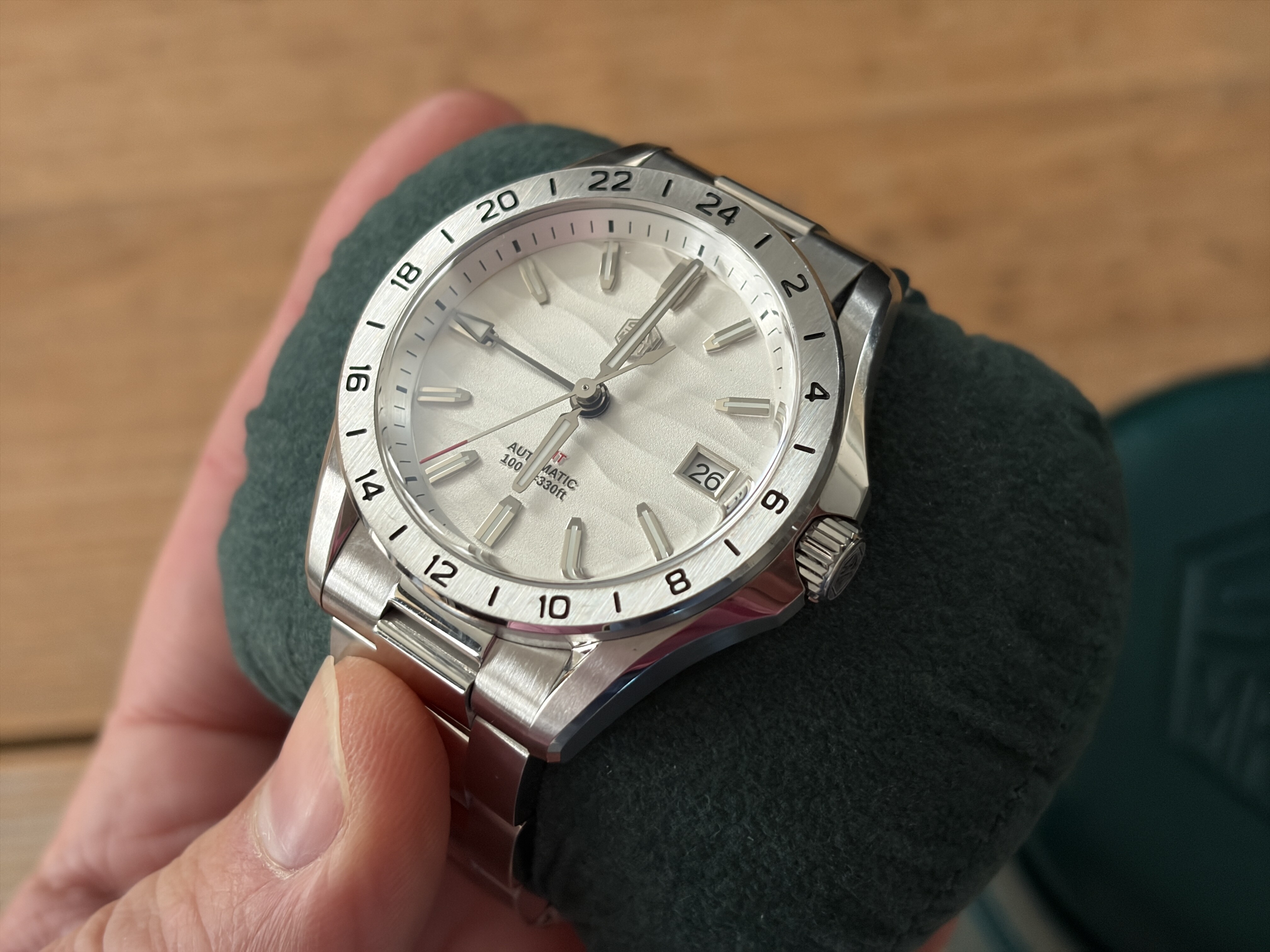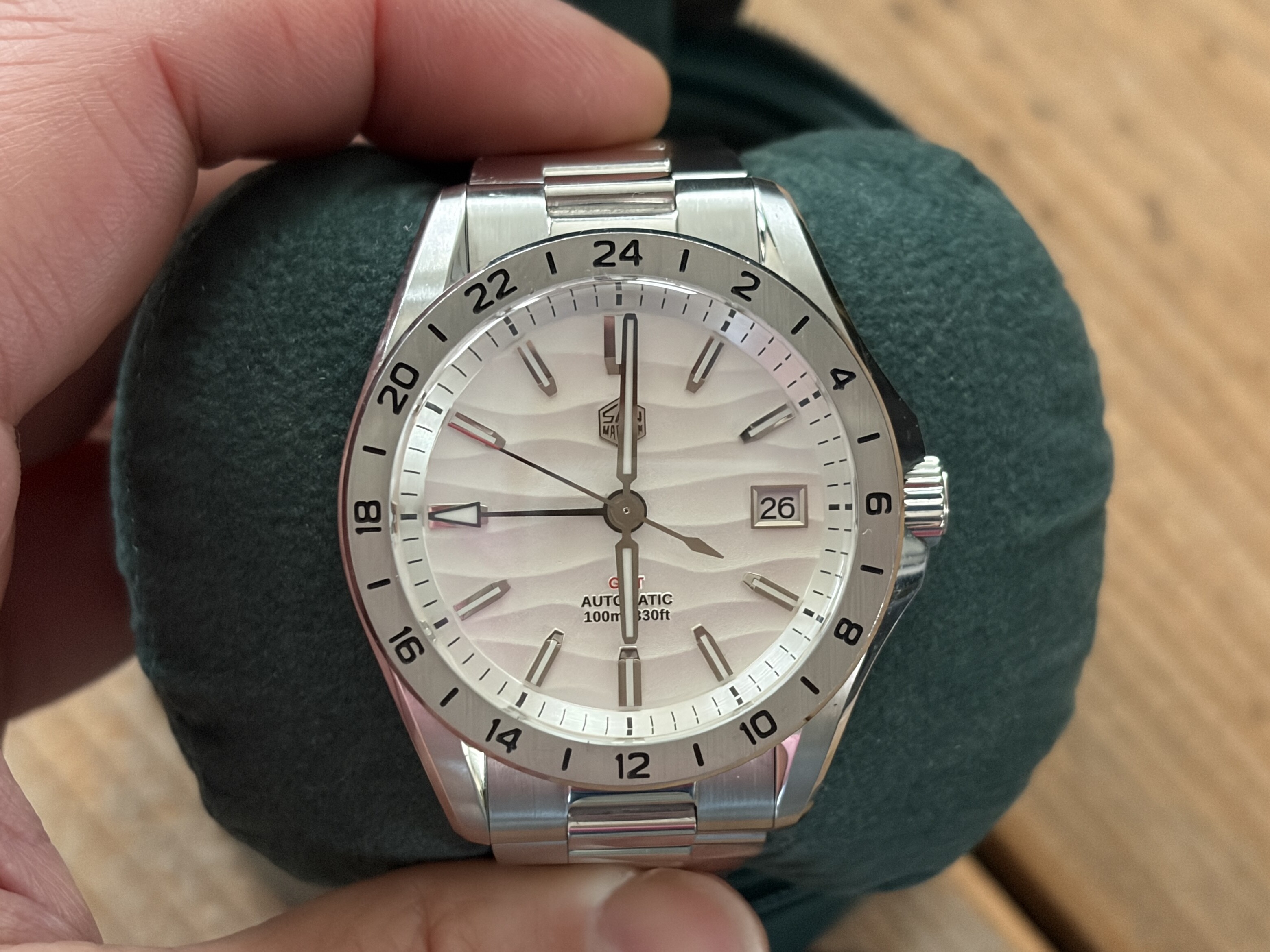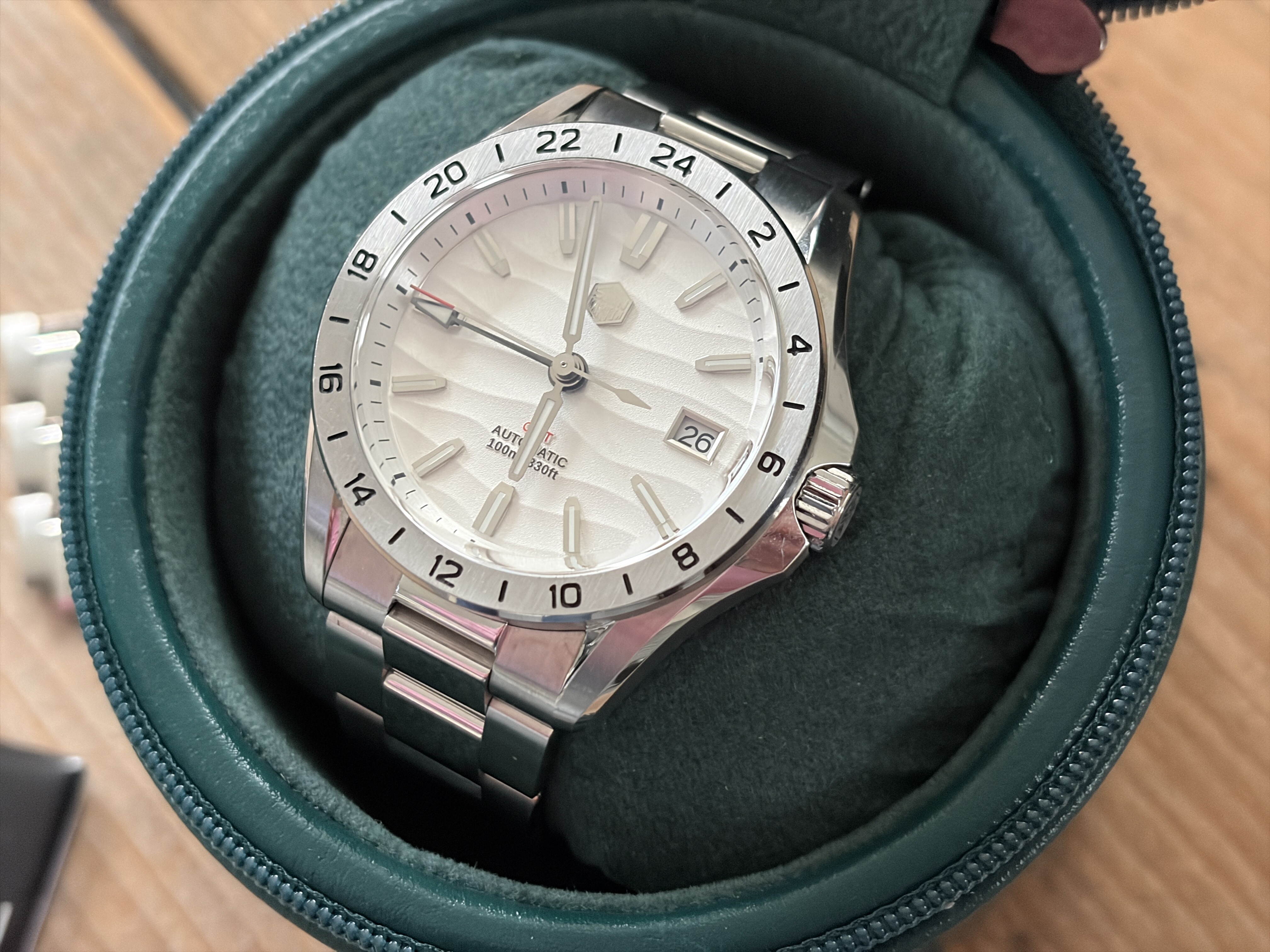 Merk en model: San Martin GMT - SN0129-G met wit / zilveren woestijn textuur wijzerplaat