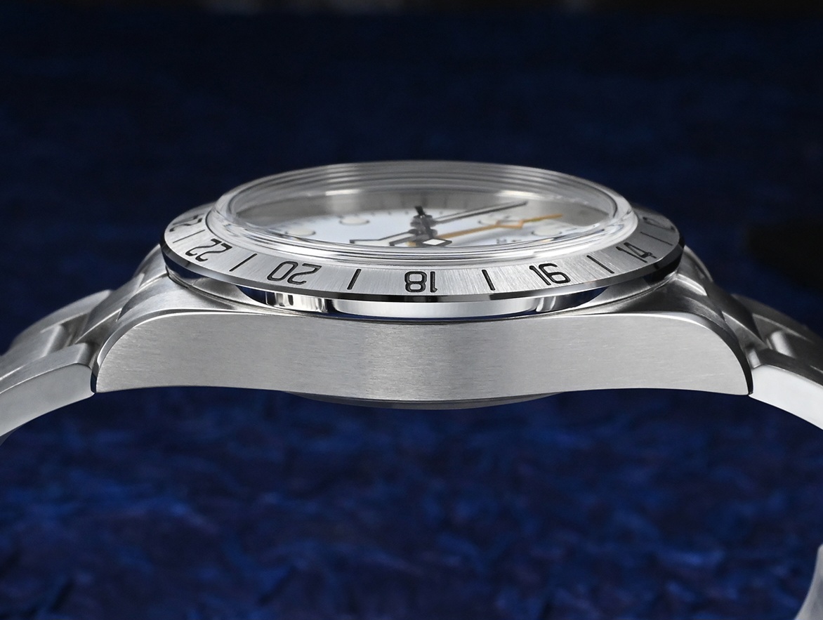 De prachtig gepolijste gekamde randen brengen de esthetiek van het horloge in balans met het draagcomfort.