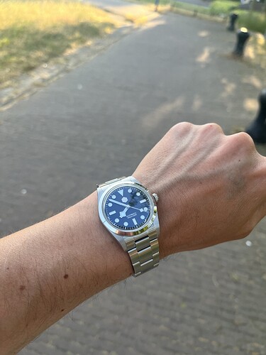 Ben reuze benieuwd. Wordt m’n kleinste horloge, maar hoop dat de grote wijzerplaat hem optisch groter doet lijken.