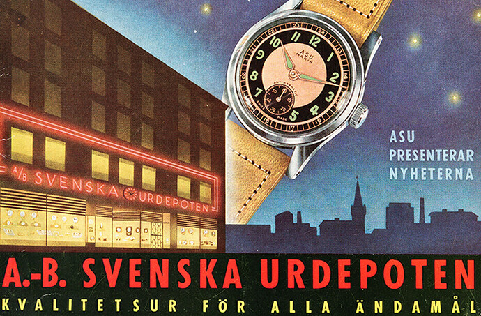 Zo kennen we uit Nederland o.a. Prisma, Monté, Union en Velona; uit België kennen we Verdal en - in zekere zin - ook Pontiac. Wat Scandinavië betreft: Uit Zweden ken ik inmiddels de merken Milljonär, ASU (Aktiebolag Svenska Urdepoten), Nilax (Nillson & Axell) en Svea, uit Finland zien we, mede dankzij Forumlid @Proenski ook hier op het Forum, de mooie vintage horloges van Leijona en Tiger.
