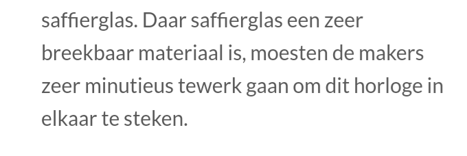 Bij een kast met saffier wanden van >2mm. Wat je daar leest zijn marketing teksten. Je kan daar niet neerzetten van we hebben het even in elkaar gedraaid, die tekst is geen +100.000€ horloge waardig.