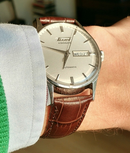 Ik heb die Hirsch duke op een Hamilton Jazzmaster zitten op dit moment. Kan heel goed. Op jou Tissot doet hij het ook prima zie ik.