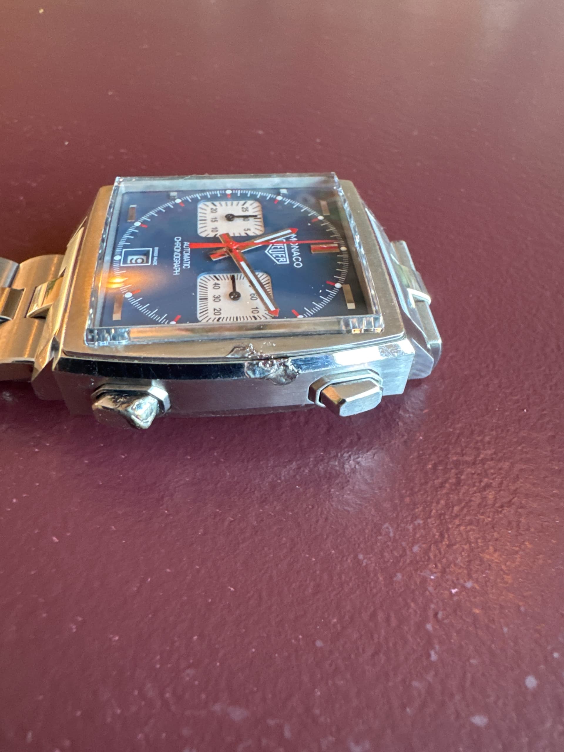 Zo! Moet een flinke klap hebben gegeven, niet? Hopelijk ben jij er goed vanaf gekomen, horloge is wel gaaf zo, zou alleen de pusher vervangen en kast zo laten- mooi verhaal