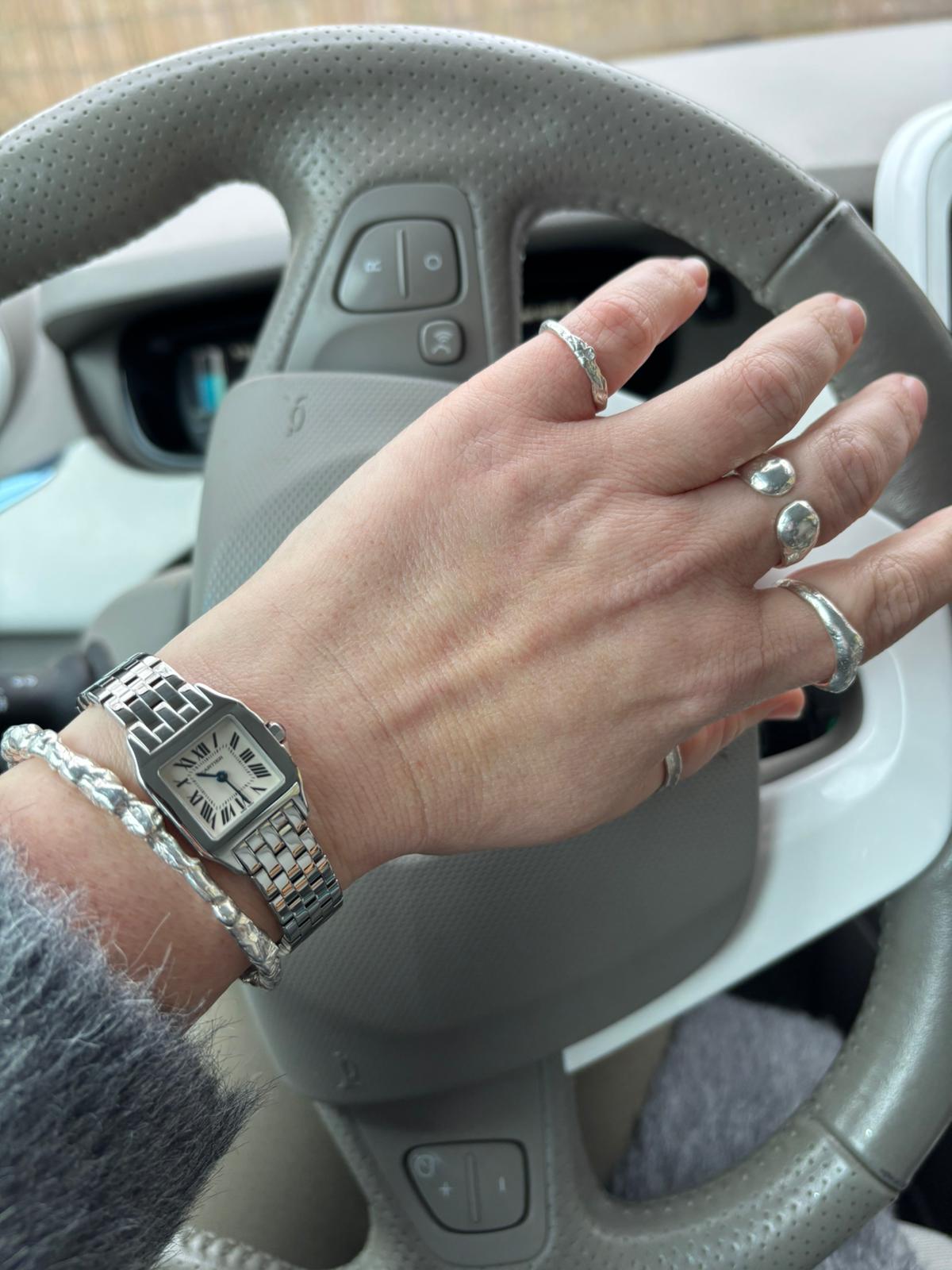 Mijn vrouw kan aanmerkelijk sneller beslissingen maken dan ik doe en heeft een tweedehands Cartier Santos Demoiselle gekocht. Het horloge is vandaag binnen gekomen en is werkelijk prachtig, maar de band is te klein.