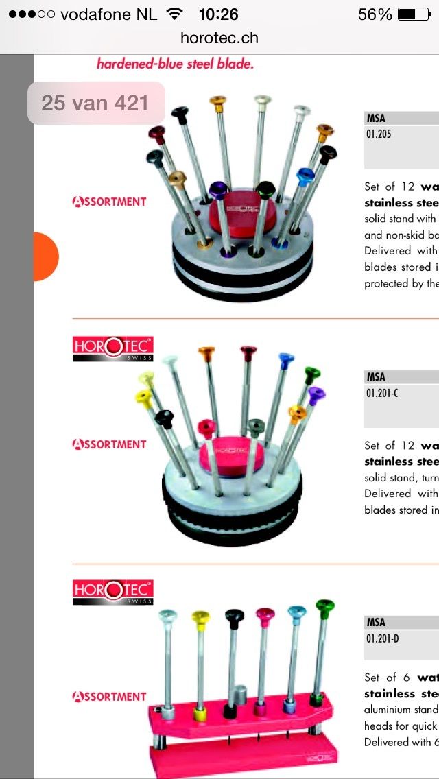 Als je een slijpsteen koopt dan slijp je de schroevendraaiers zo scherp als je wilt afhankelijk van de hoek waarin je ze houdt. Ik heb net als Melvin een A*F Swiss set en die zijn echt prima. Mocht je interesse hebben dan heb ik nog een compleet molentje.