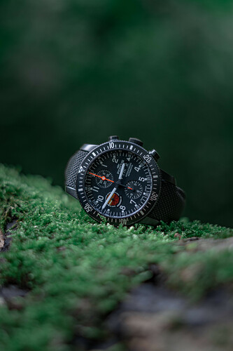 Het is geen klein horloge met een diameter van 44mm en een lug to lug van 53mm maar het is nog draagbaar om mijn pols van 16,5cm. Door de passende Cordura zit hij erg form fitting onder de pols maar als amateur fotograaf vind ik het altijd bijzonder ruk als ik het horloge alleen maar zijwaards neer kan leggen voor foto’s. Die band is dan ook nog eens extra stevig vastgezet via het schroefsysteem op de B-42 kast zodat je nooit risico loopt om je horloge te verliezen.
