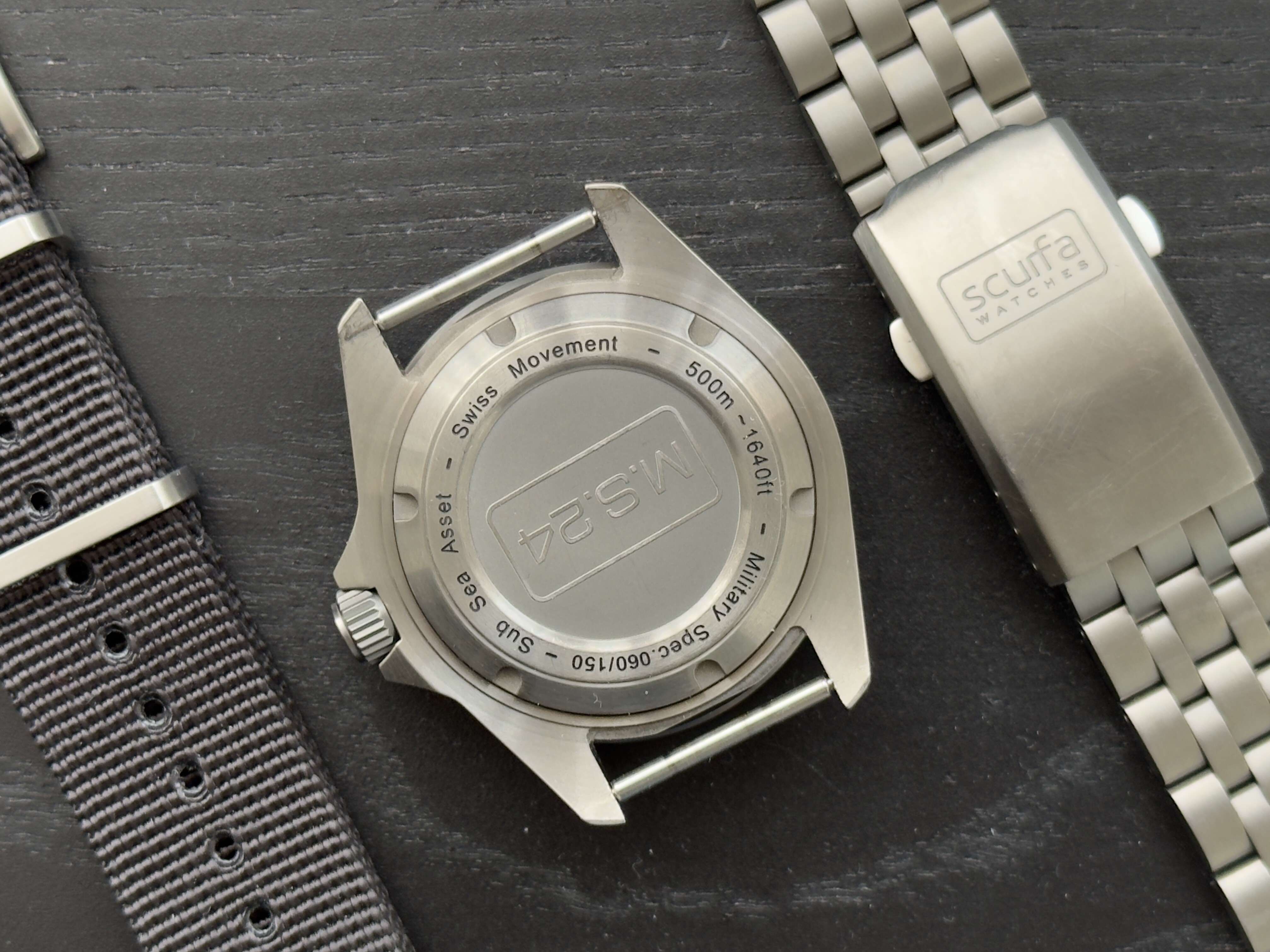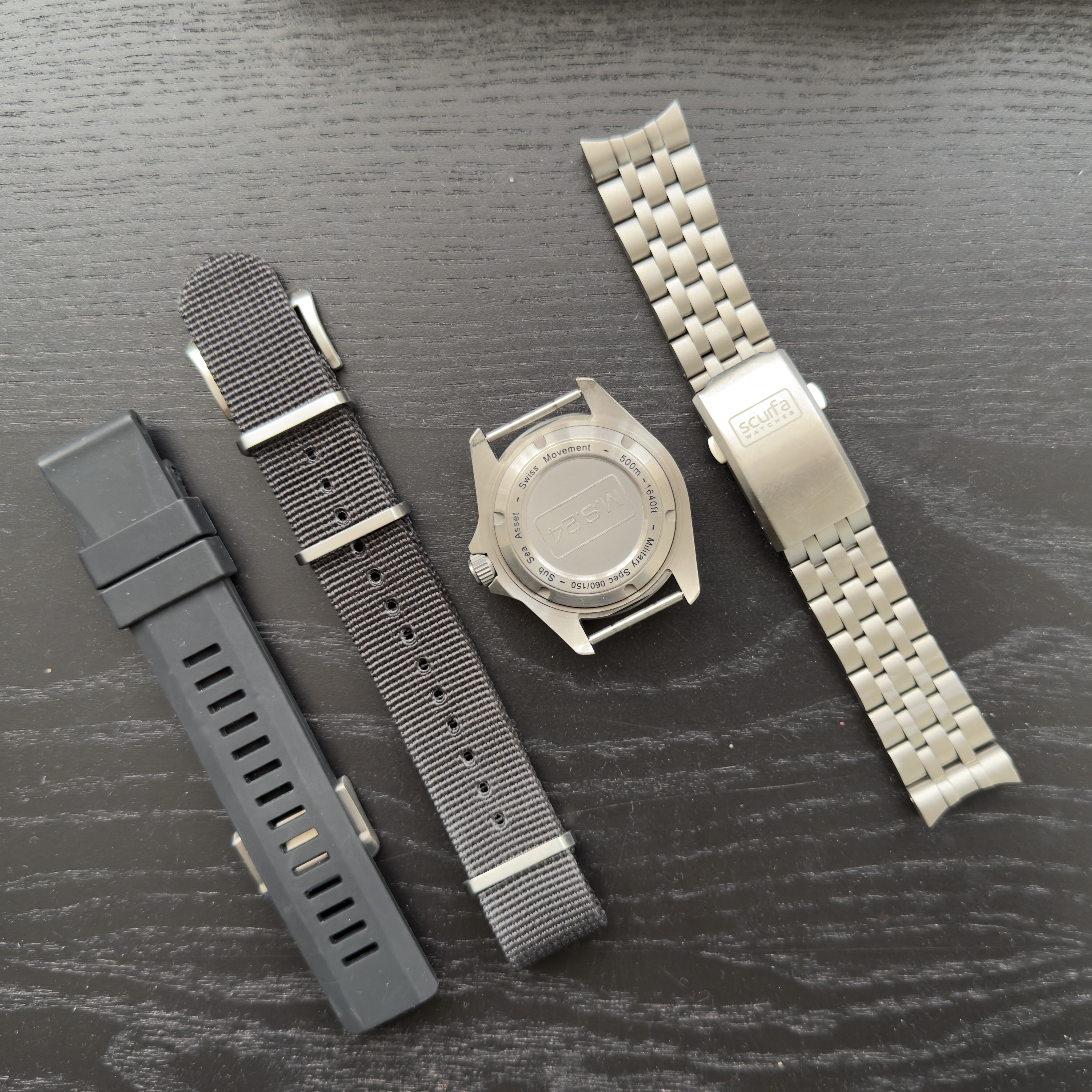 Te koop aangeboden, mijn Scurfa D1 MS24 Limited Edition. Nummer 60 van 150 in de zwarte kleur. Komt in originele doos, met NATO, Rubber én extra aangeschafte titanium band.