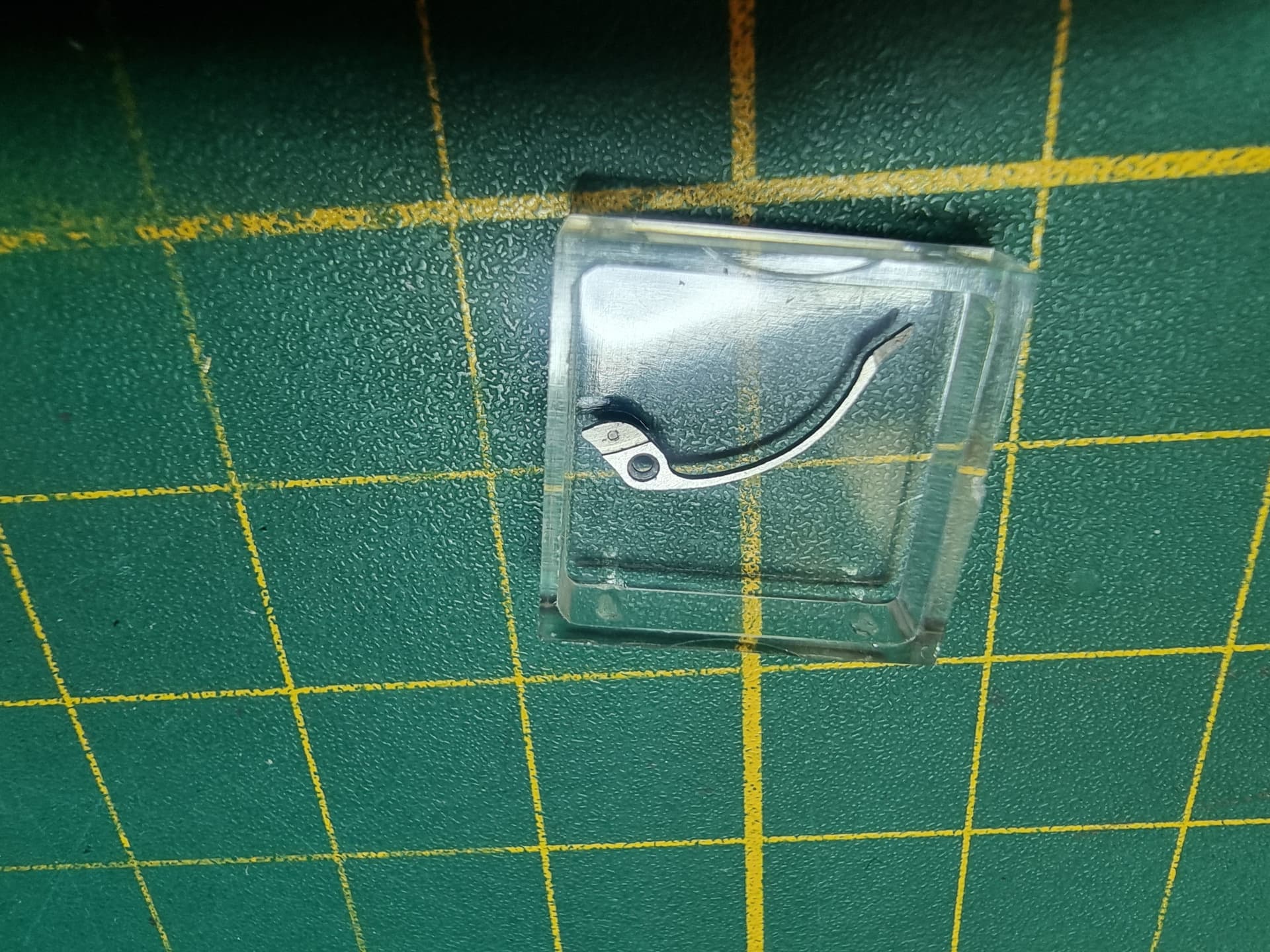 Als je het veertje echt niet kan vinden dan kan je zo’n veertje ook zelf maken van een draadje van een stukje fiets handrem kabel . Buig je zo een veertje van