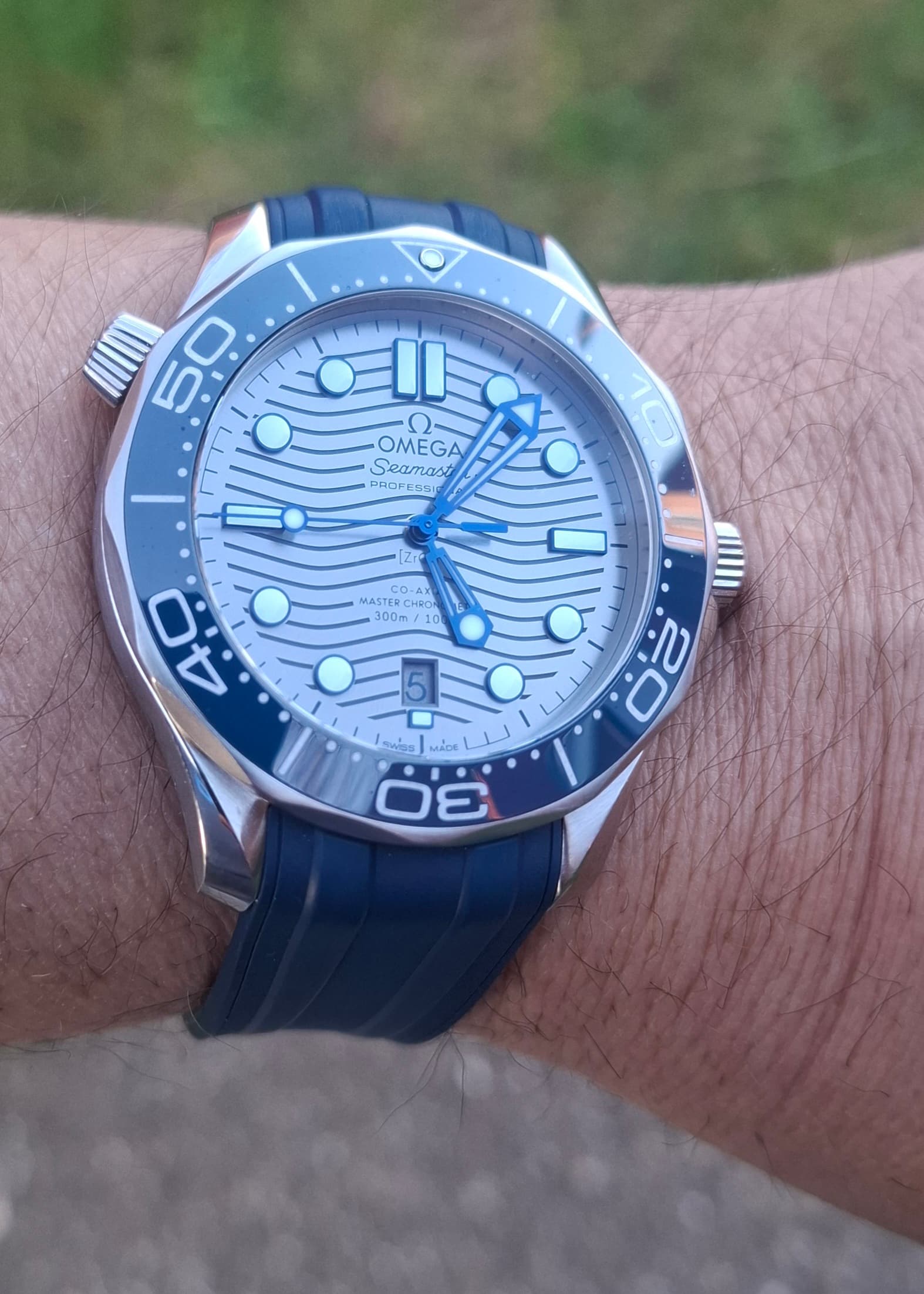 Al een jaar of 10 denk ik…bij de eerste servicebeurt bij een authorized Omega hersteller heb ik verzocht om de standaard dial te vervangen door deze Non-AC dial. Grote blij voor mij (en de originele wijzerplaat is natuurlijk netjes opgeborgen)