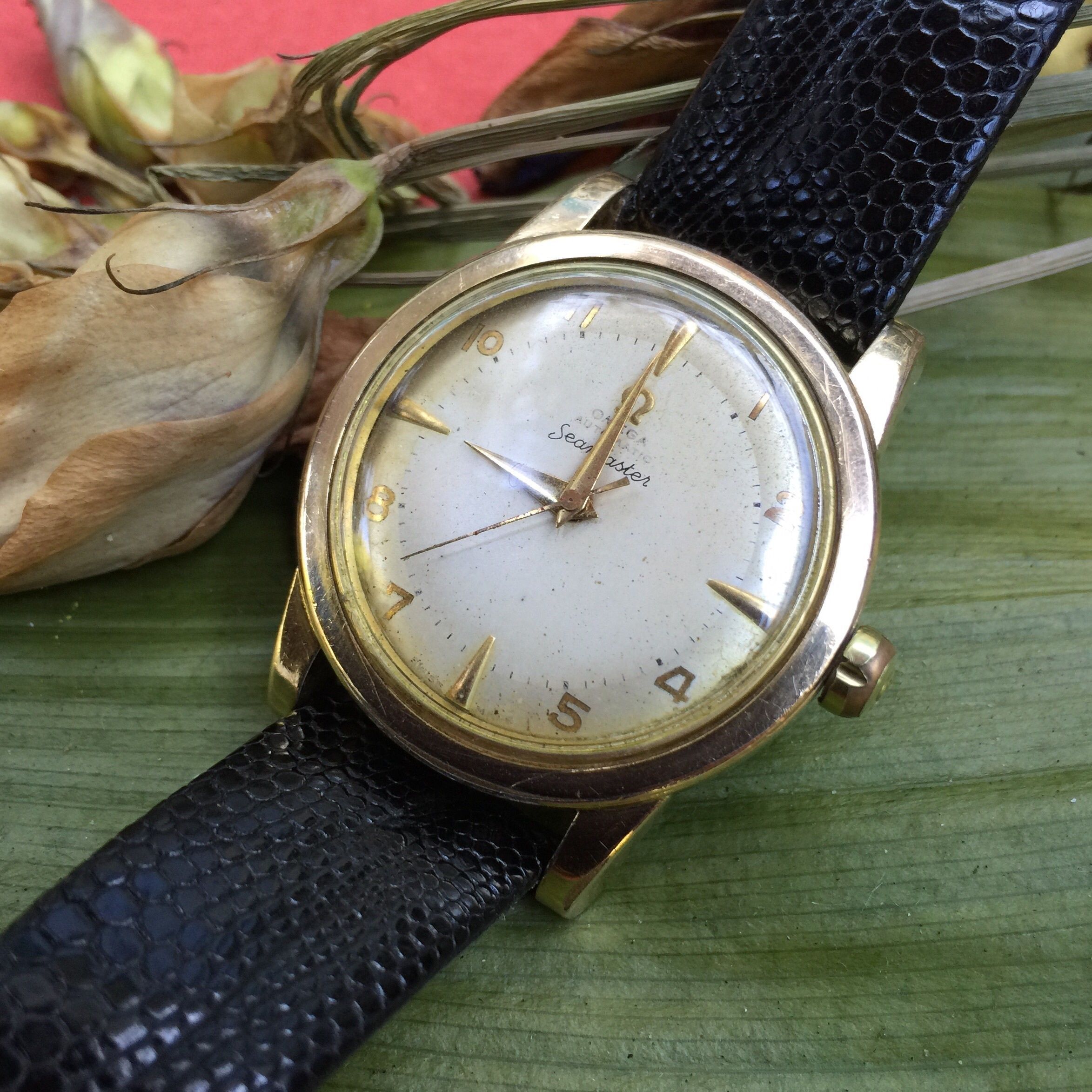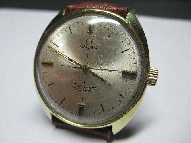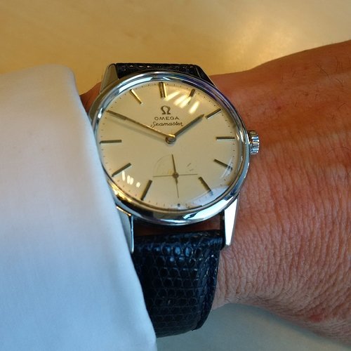 Deze kocht ik vorige maand. 14 karaat gouden Seamaster uit de fifties. Mooi automatisch uurwerkje en een dikke kast welke nog haar originele facetten had. Heel kort maar in bezit gehad, want ge-upgrade naar een m.i. mooiere Longines.