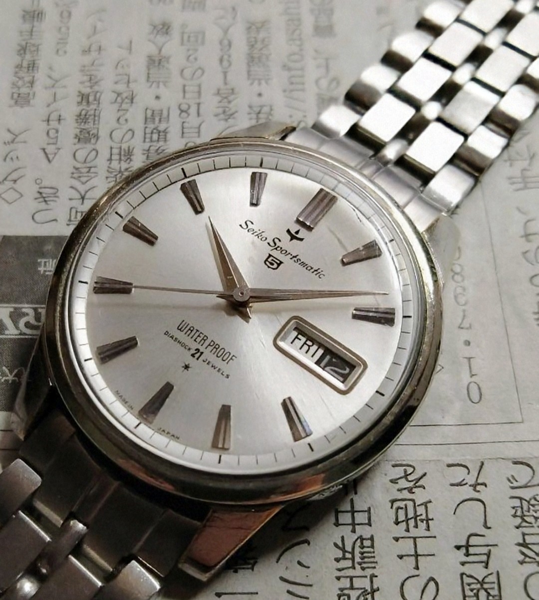 Ik heb hier de opa van al jullie Seiko 5’jes, namelijk de Seiko Sportsmatic 5. Het allereerste horloge met de 5-naam. En tevens, het allereerste automatische horloge met dag-datum aanduiding van Japanse makelij.