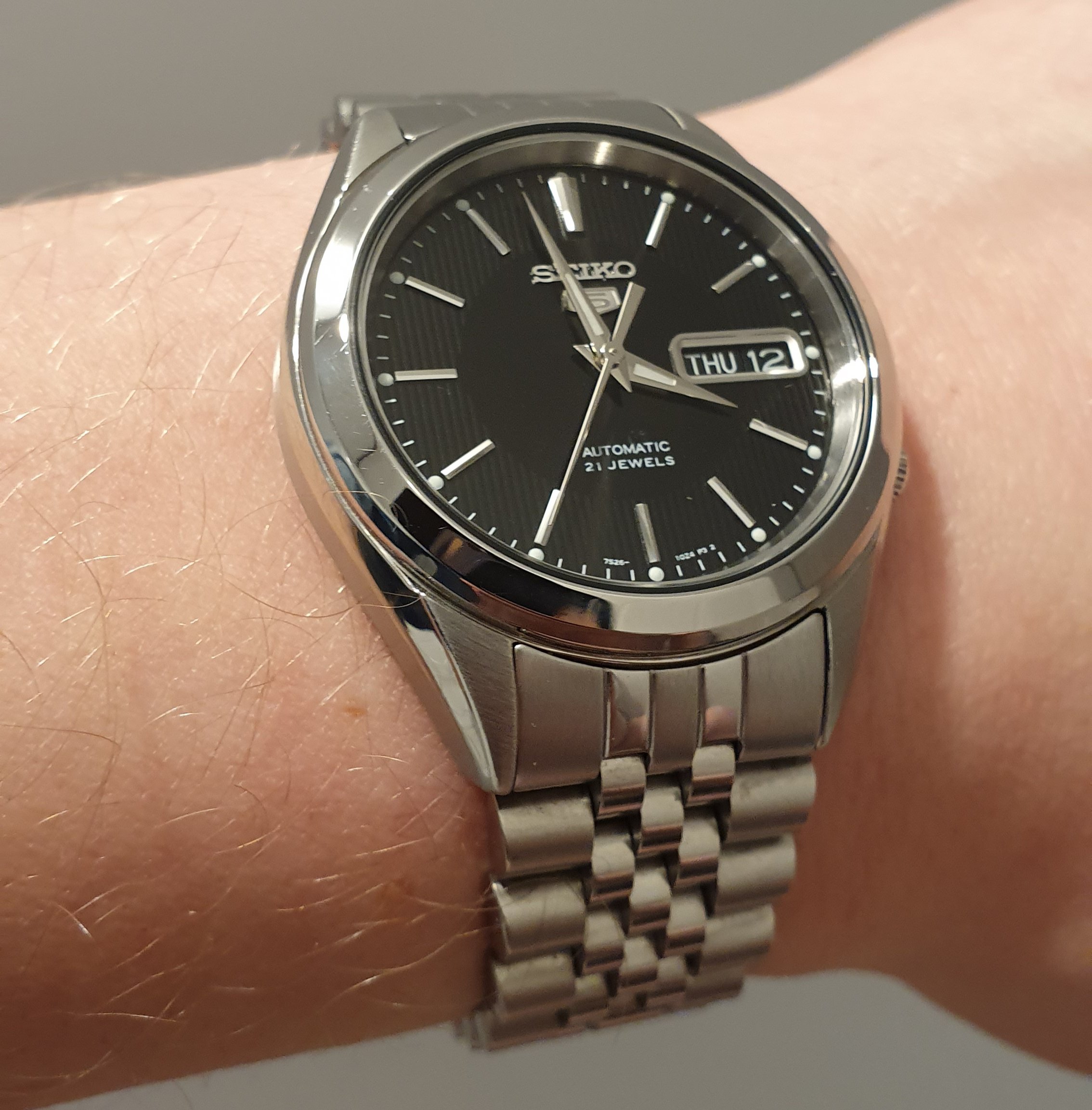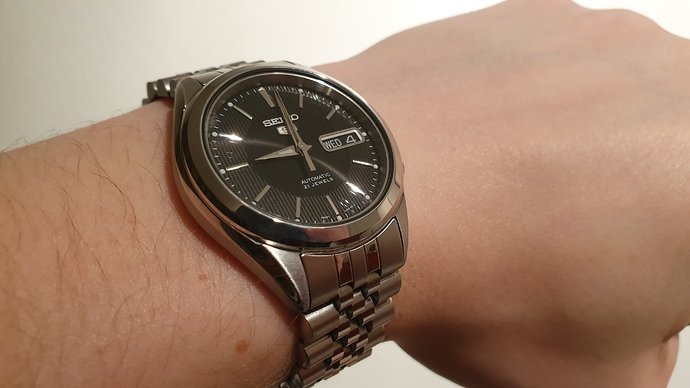 Aan de maat moest ik eerst ook wennen, maar nu vind ik hem net zo goed passen als mijn andere horloges met 40+ mm diameter.