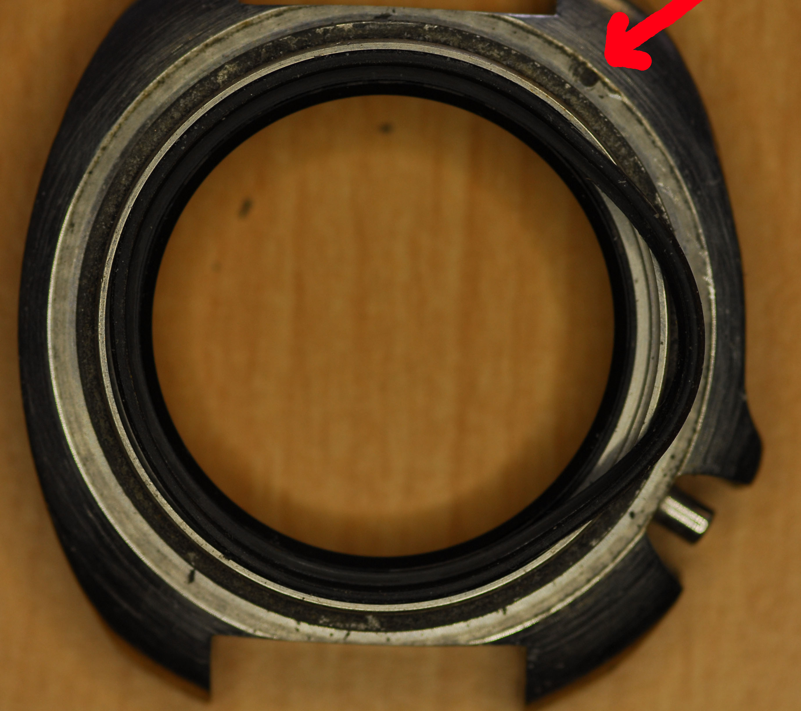 De bezel is ook wat vuil en de inlay is enigszins losgekomen.