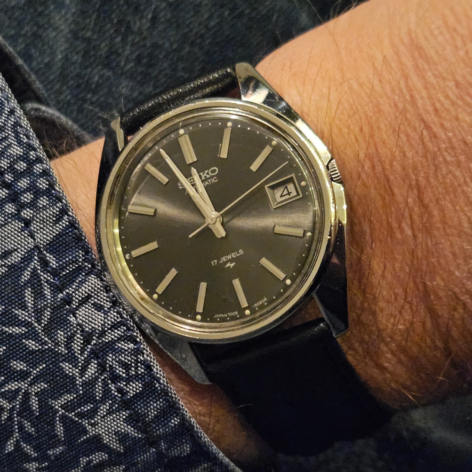 Onopvallend maar karaktervol, deze 7005-7100 uit 1976. De gele uur-indices op de plaat zijn en subtiel detail😊