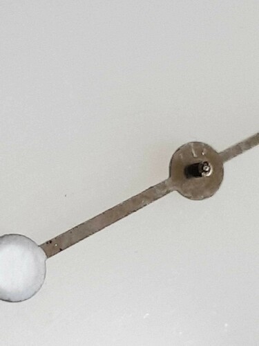 Dank allemaal voor de reacties. Meisink had gelijk, nav de foto van ElderRuwy heb ik een microscoop app gedownload (hoe geweldig werkt dat!) gebruikt en zie dat in de wijzer een afgebroken stukje as zit.