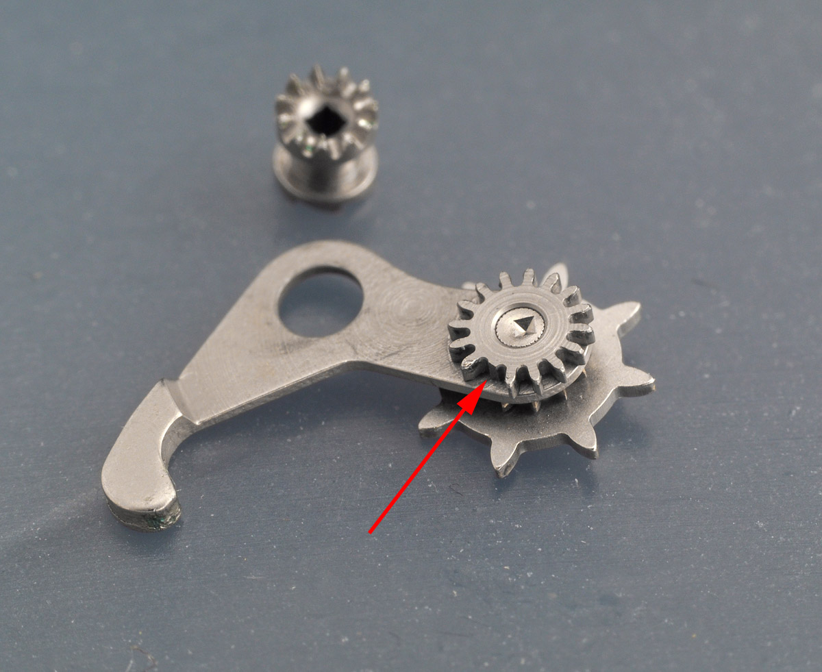 Center wheel en cannon opinion voor de zekerheid gereinigd… deze zijn goed… van de andere uurwerk onderdelen gewisseld om te testen (Muv setting wheel lever). Tikje gegeven de Setting wheel lever… geen succes