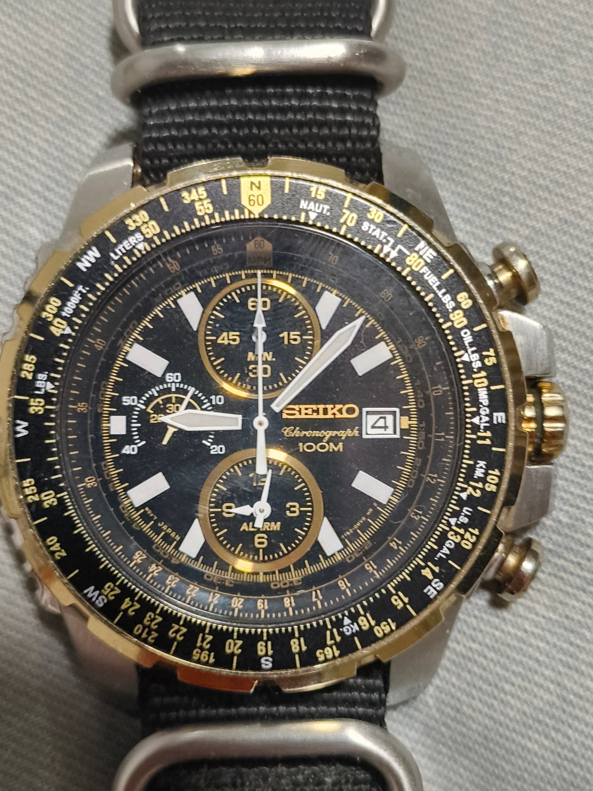 Another variant of @Bernardo’s watch is the colour of the chapter ring. As well as the case being either gold or chrome, the chapter ring could be in white or gold colour. There is also a panda and reverse panda version of the 7T34-6A00. Included but not forgotten is the 7T34-6A20, a collectors piece. See picture.