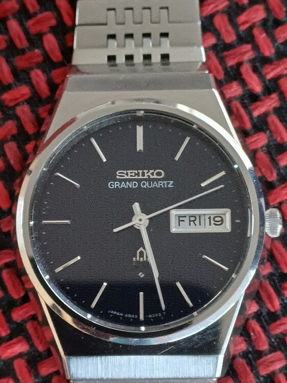 Horloge is in nette staat,glas is perfect.nieuwe batterij,band origineel op volle lengte.Houd prima de tijd.Plaat is supermooi en zie je niet vaak,maar vind het horloge net wat te klein.