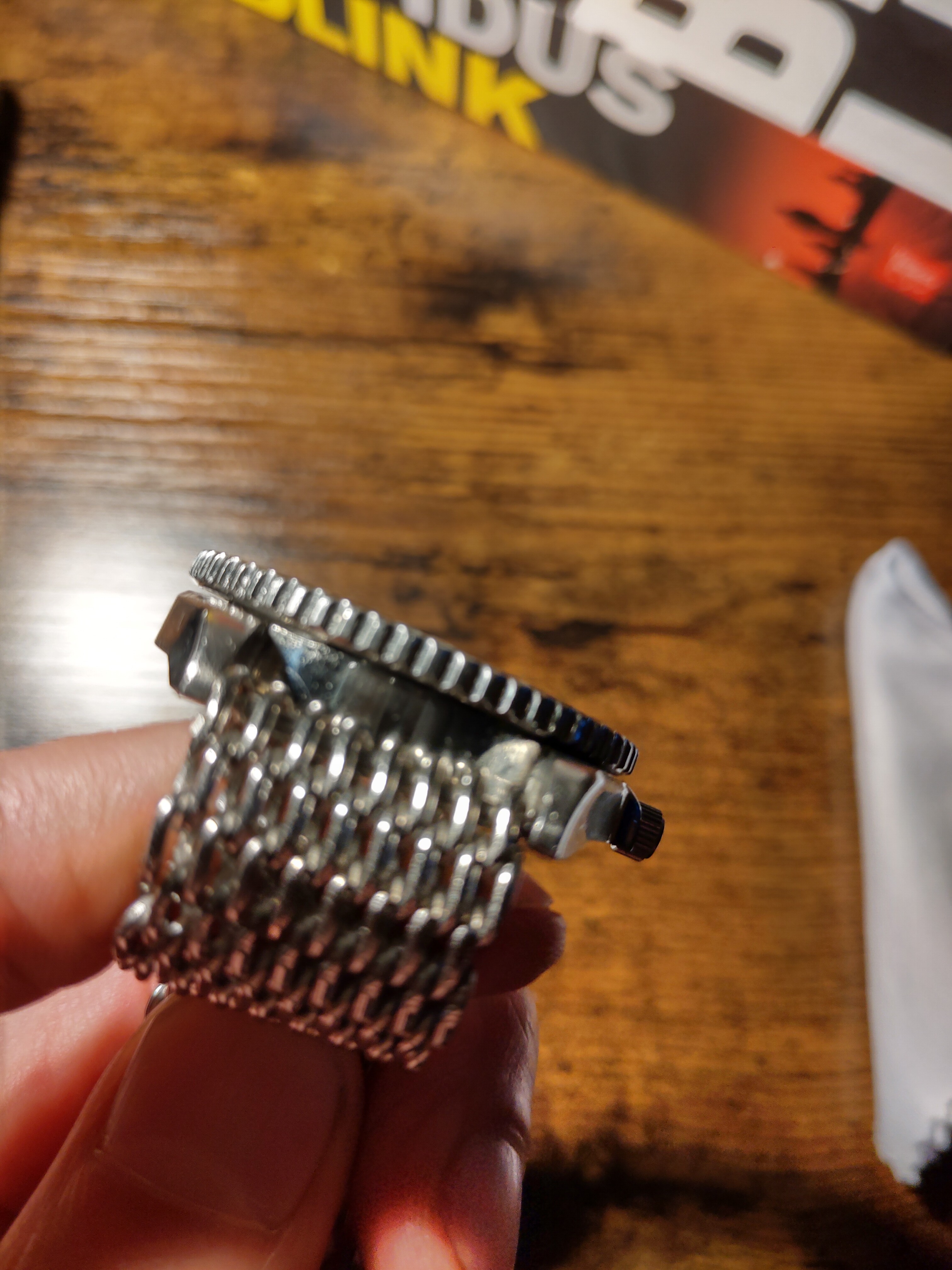 Heb hem er even uit gehad de bezel en het ringetje eronder ( waarmee de bezel draait ) wat schoon gemaakt en hij zit al beter