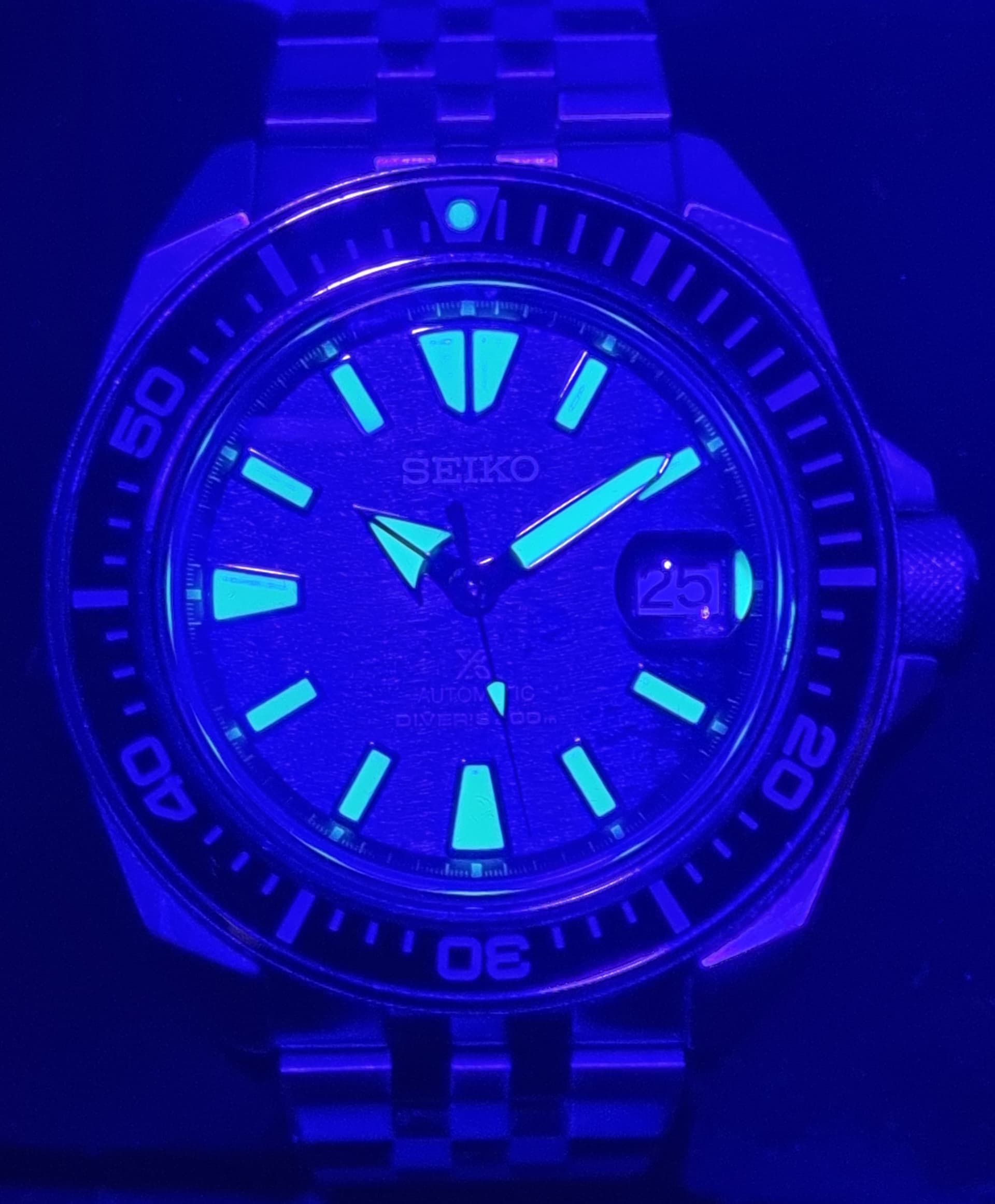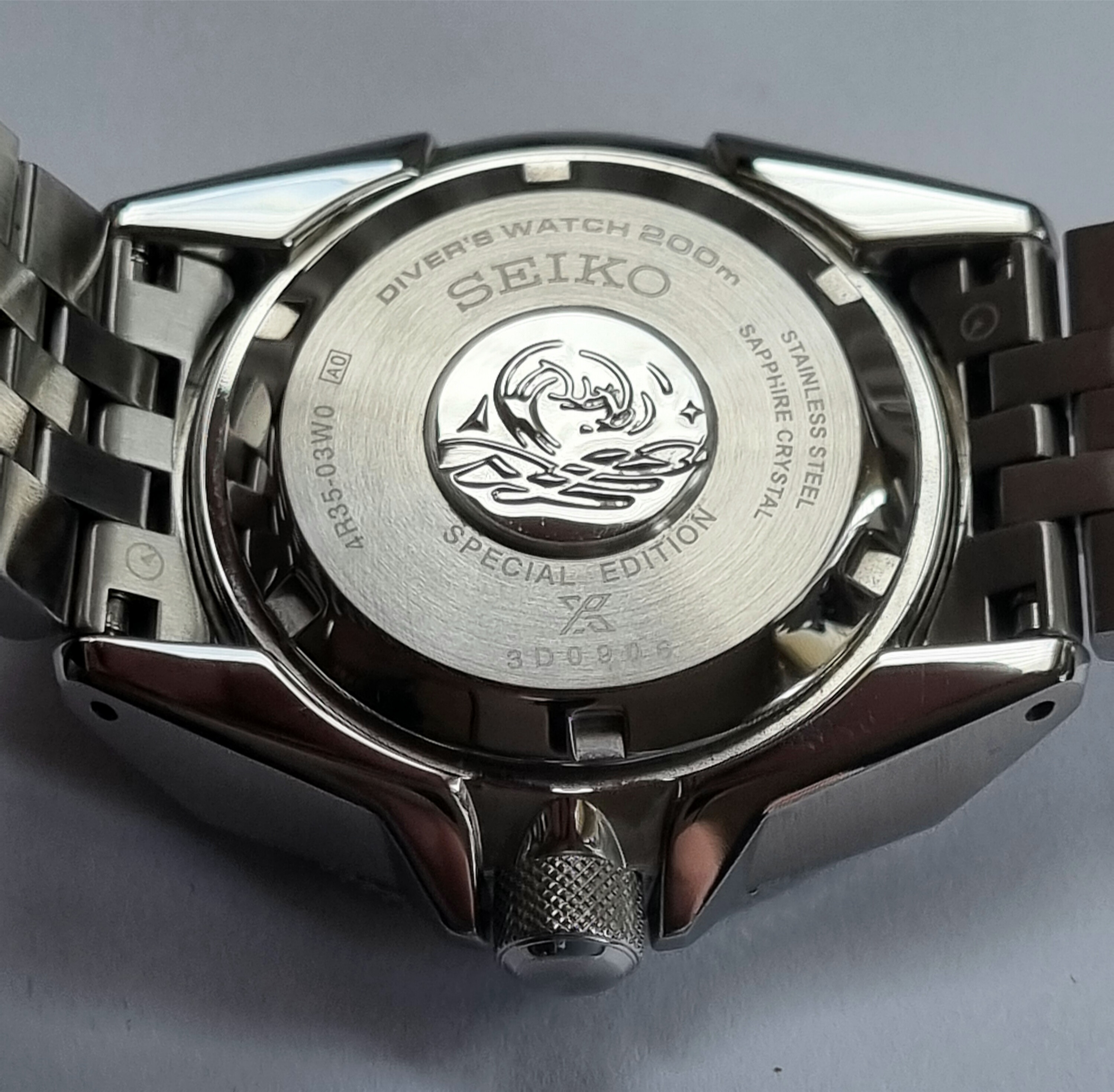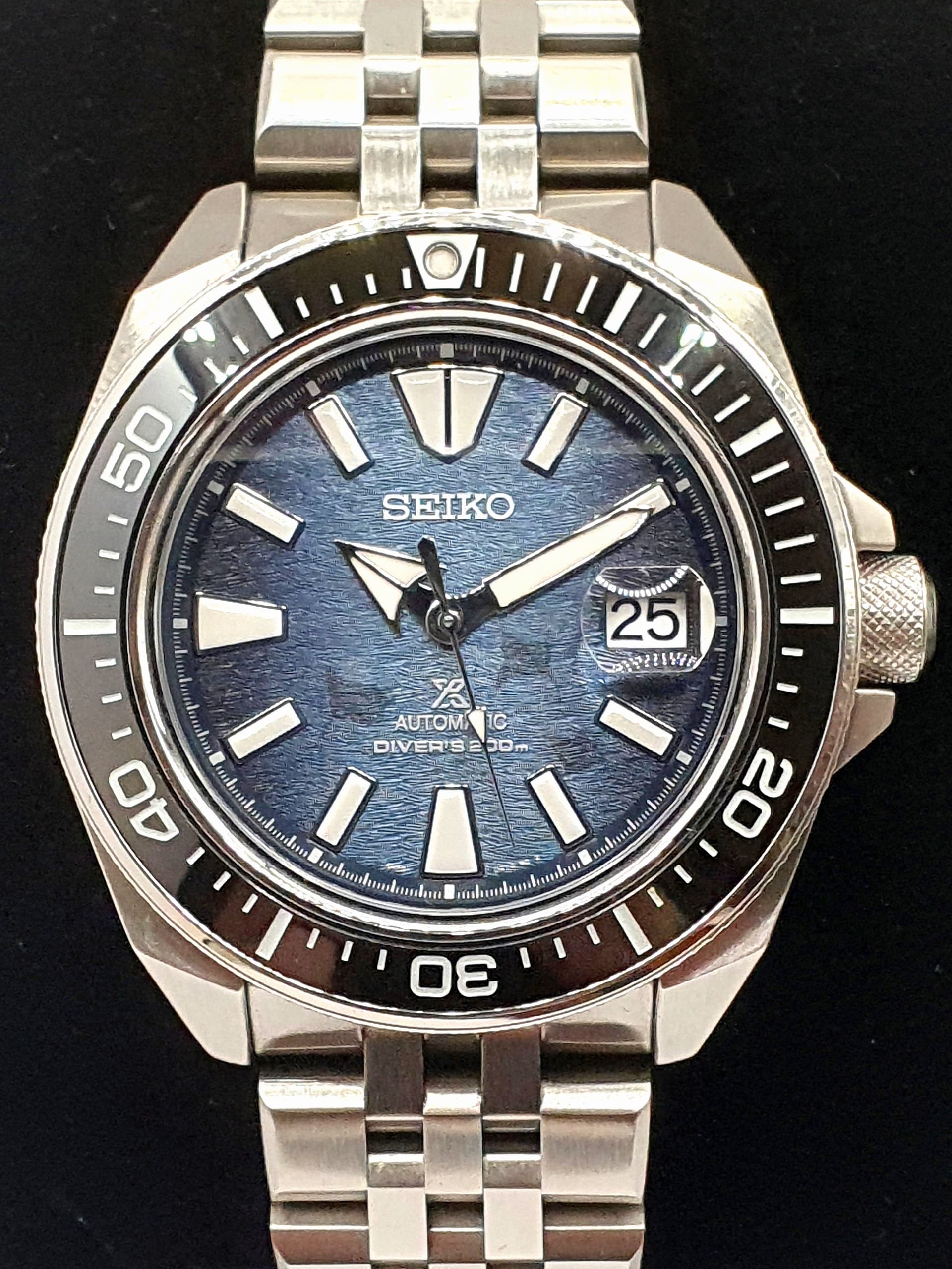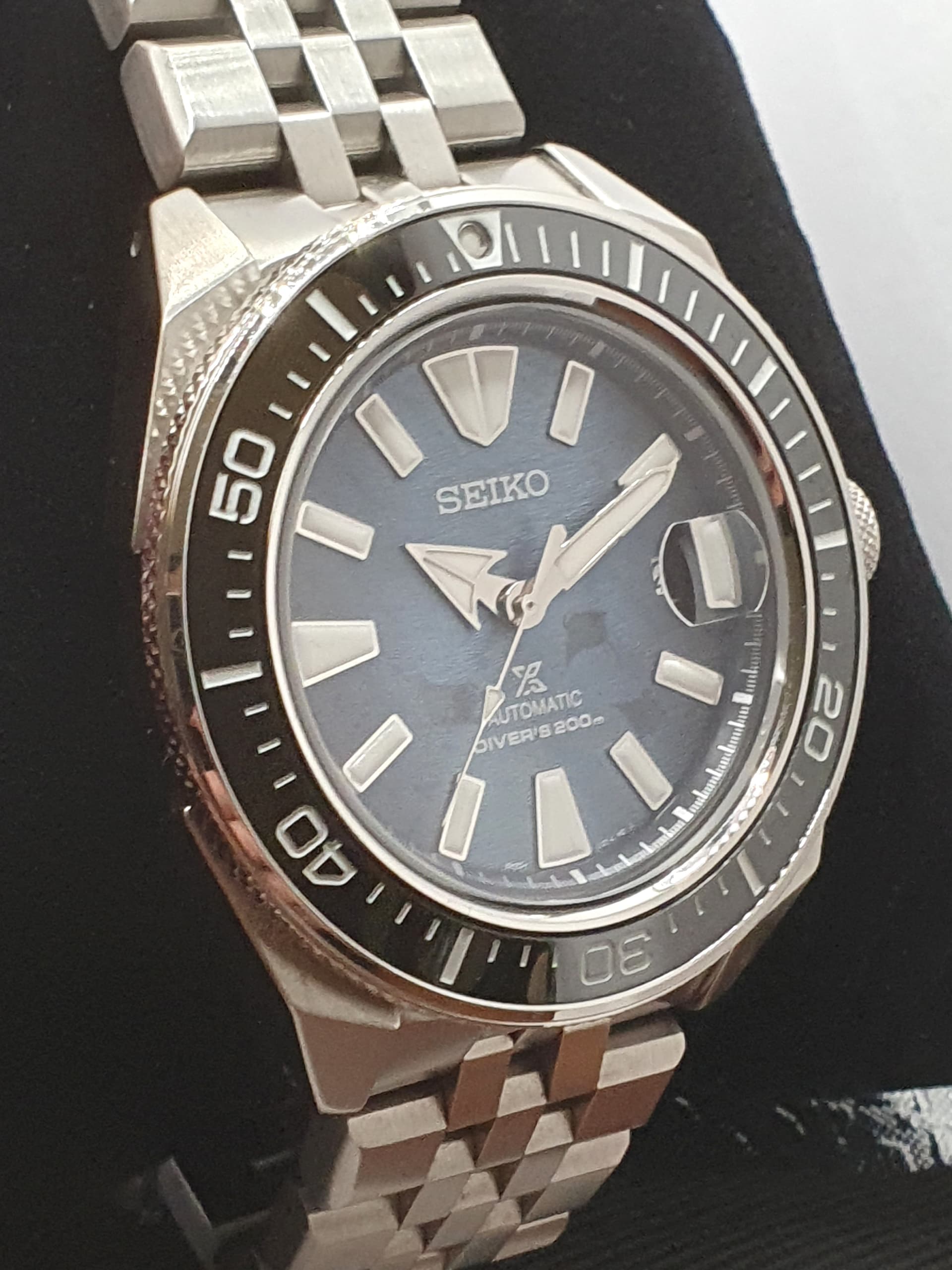 Ik ben geen fan van de stalen banden van Seiko. Nou komt deze Dark Manta sowieso op rubber, maar ik wilde er wel een stalen band bij, dus een bijhorende Island Engineer II bacelet gekocht, speciaal gemaakt voor de King Samurai.