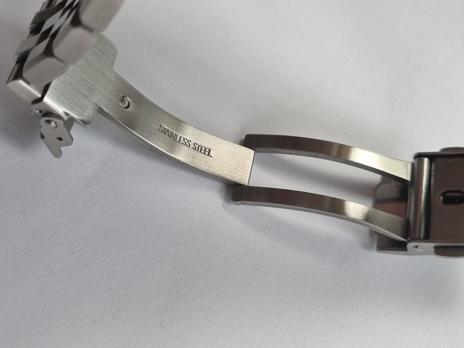 In tegenstelling tot Seiko banden is deze Engineer II volledig solid inclusief solid endlinks en geschroefde links in plaats van pin en collar. Zo zit er ook een milled clasp op in tegenstelling tot de stamped clasp op de orignele Seiko band. Kortom, een zware upgrade en absolute kwaliteits band, superieur aan de orignele band.