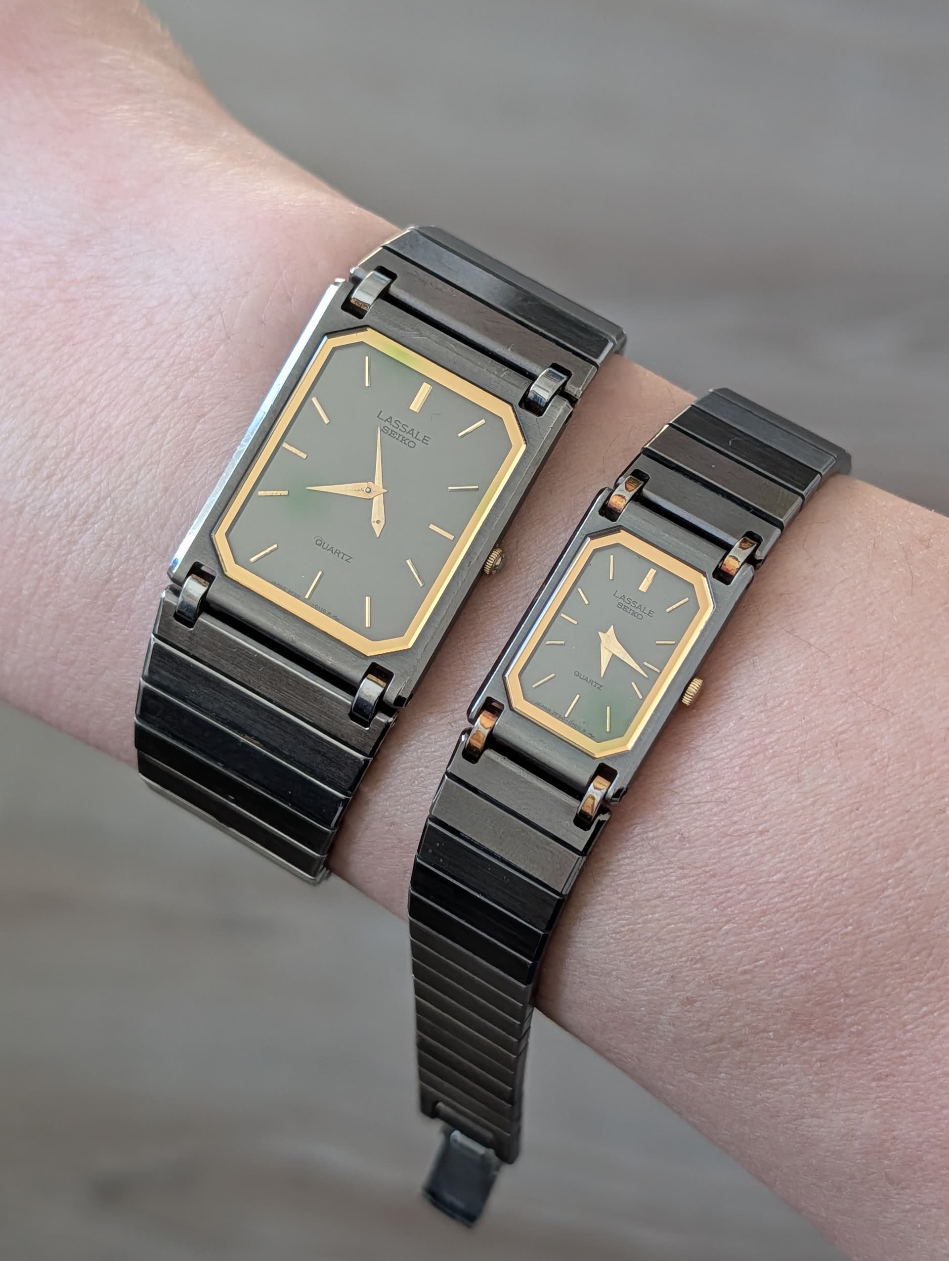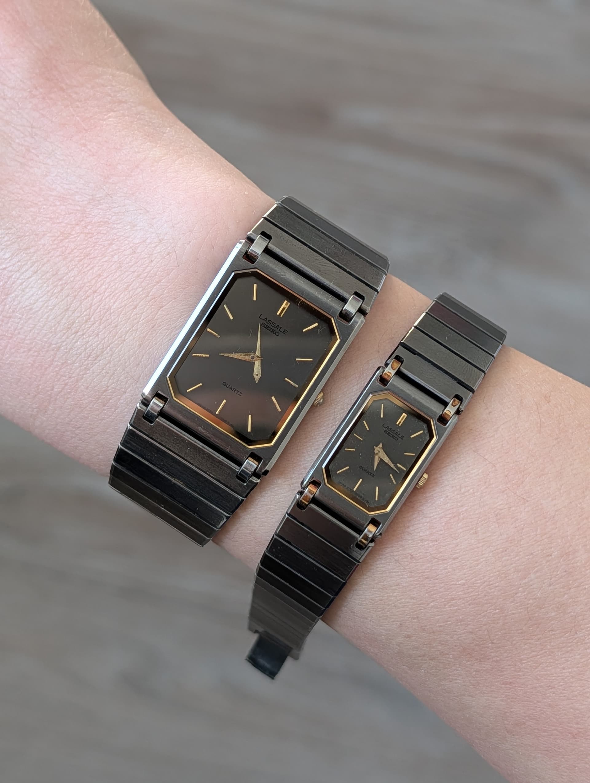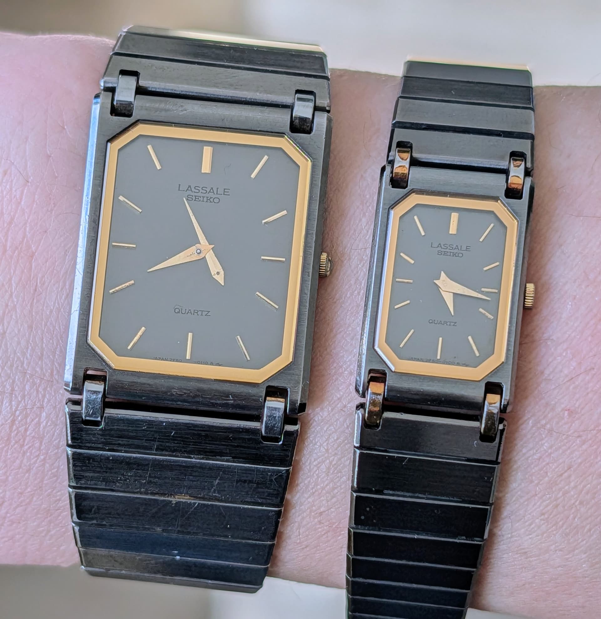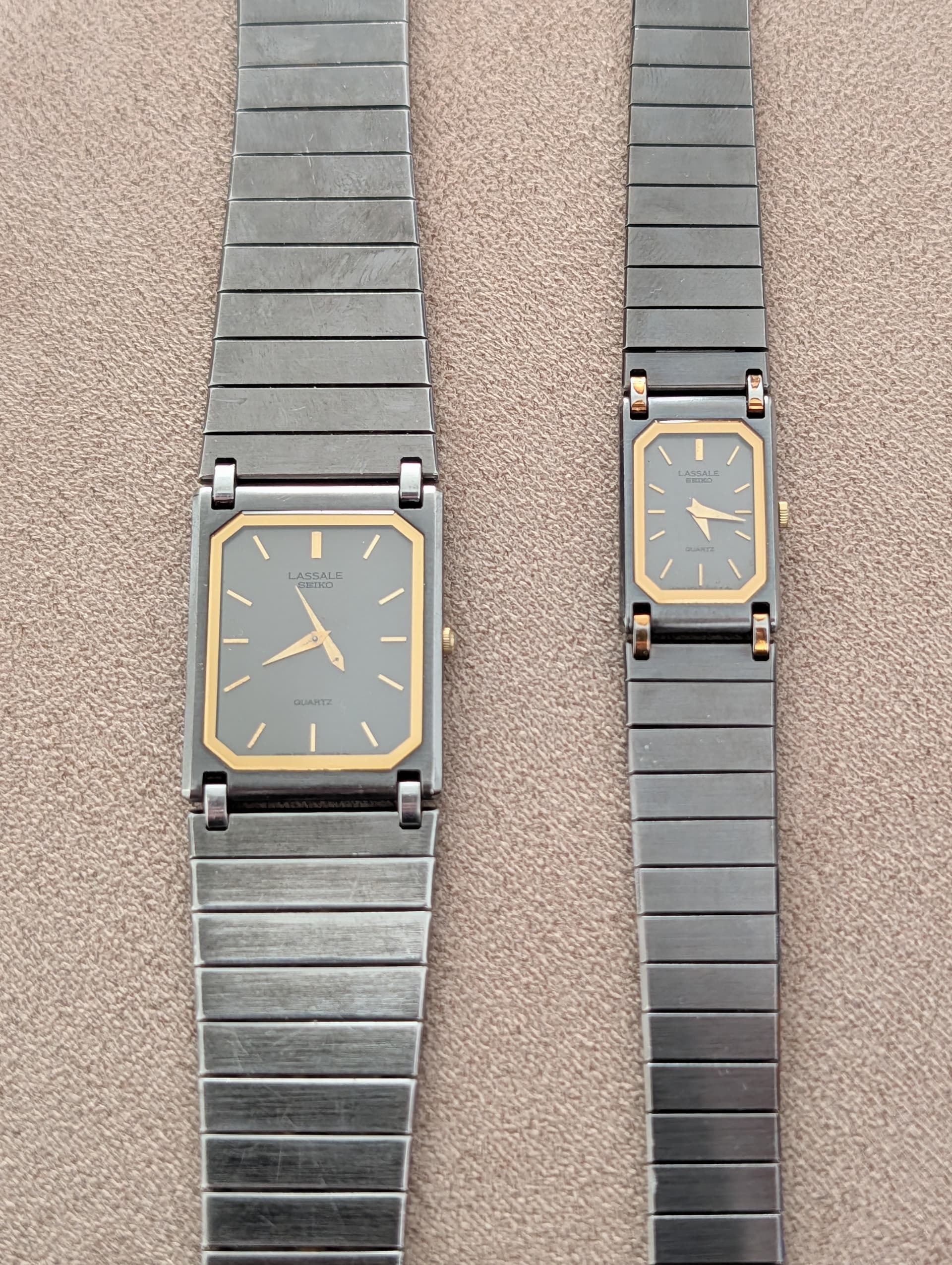 Mijn ouders hebben deze set Seiko Lassale’s in de jaren 80 in Hong Kong gekocht en het waren echt hun daily’s. Helaas liggen ze al jaren opgeborgen omdat bij het herenmodel jaren geleden de minutenwijzer los is gegaan.