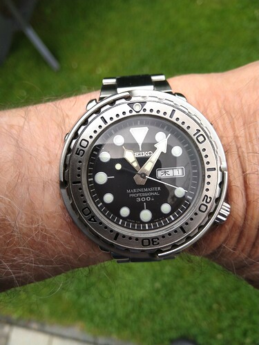 Zo ik mag nu ook meedoen hier, gisteren van @JJlind een hele mooie mm300 Tuna gekocht. Bet was erg gezellig 3 uur over horloges gepraat en gepast. Bedankt Jos!