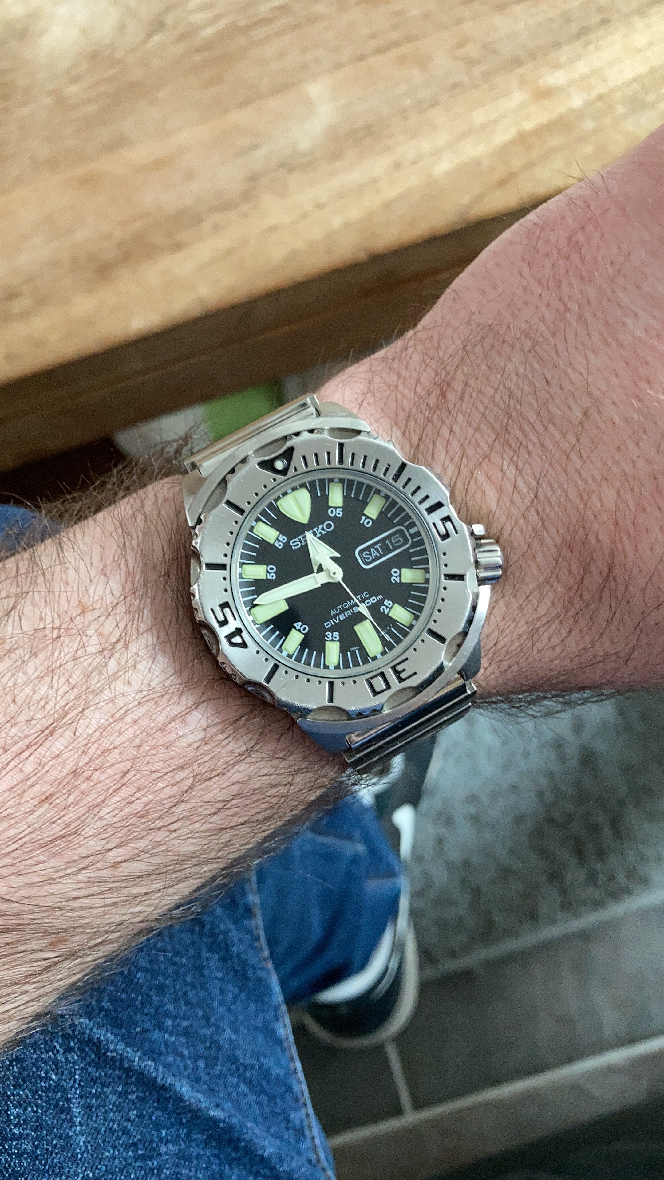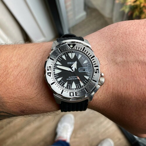 2e gen monster (SRP307), hiermee is de hobby voor mij begonnen. gekocht op origineel rubber, maar die vind ik wat te lomp, draag hem meestal op een soepele waffle band (geloof via monsterwatches)