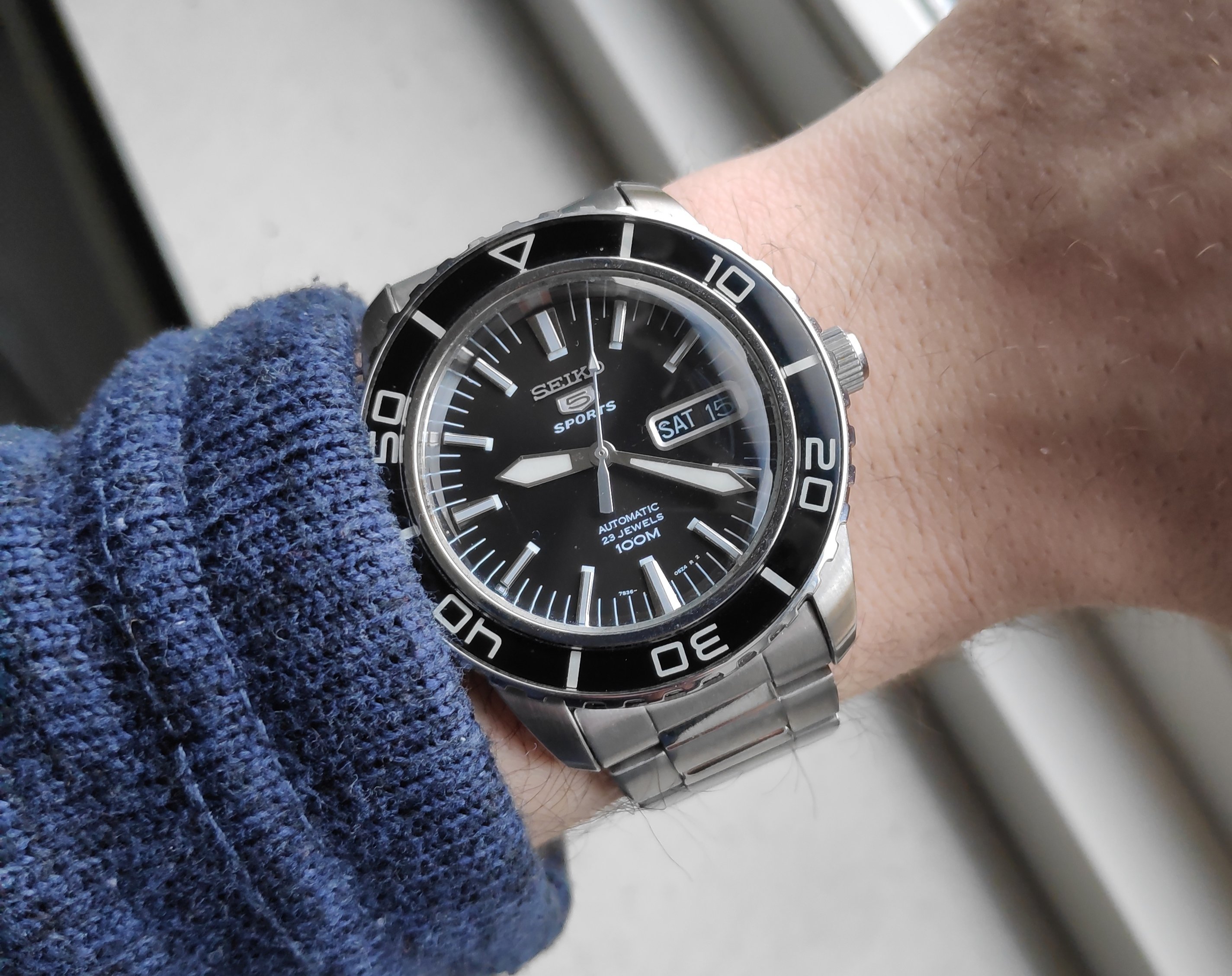 Deze is gebaseerd op de zwarte Sumo Limited Edition (inderdaad), de SBDC027. Die is er alleen in het zwart, vind ik geweldig, maar beetje prijzig aan het worden tweedehands (voor mijn bescheiden budget/psychologische grens voor wat ik aan een horloge wil uitgeven).