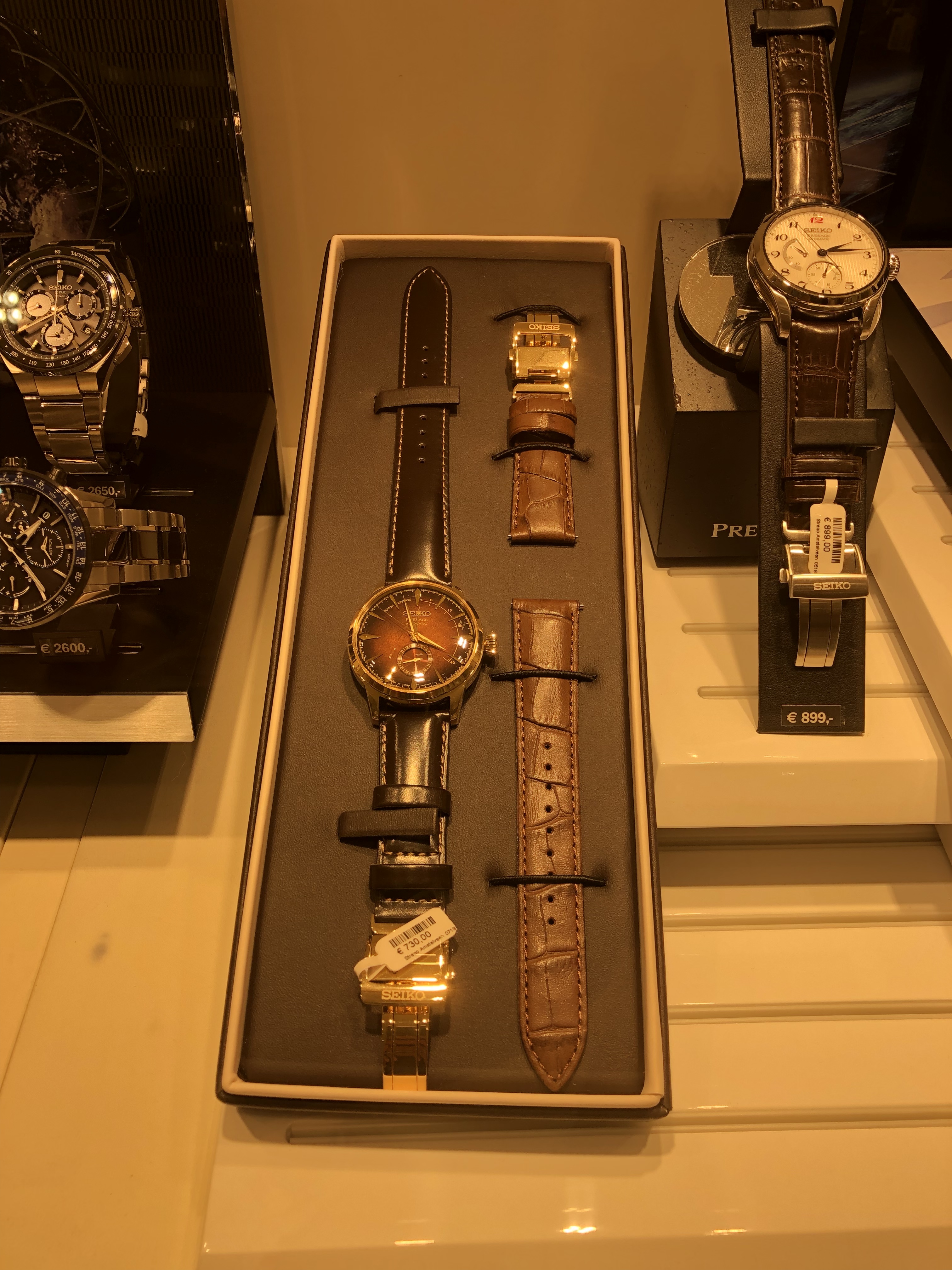 Mocht er interesse zijn voor de groene Sumo of een gouden Presage in doos met extra band…bij deze
