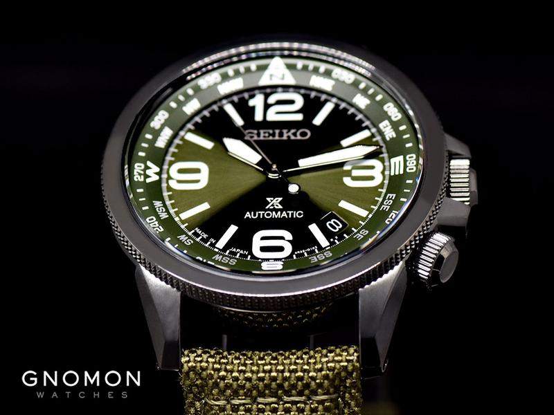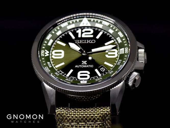 Powered by Seiko’s automatic caliber, 4R35, operating at 21,600 BPH (3 Hertzs) with hacking and hand winding capabilities. It has 23 jewels with a power reserve of 41 hours.