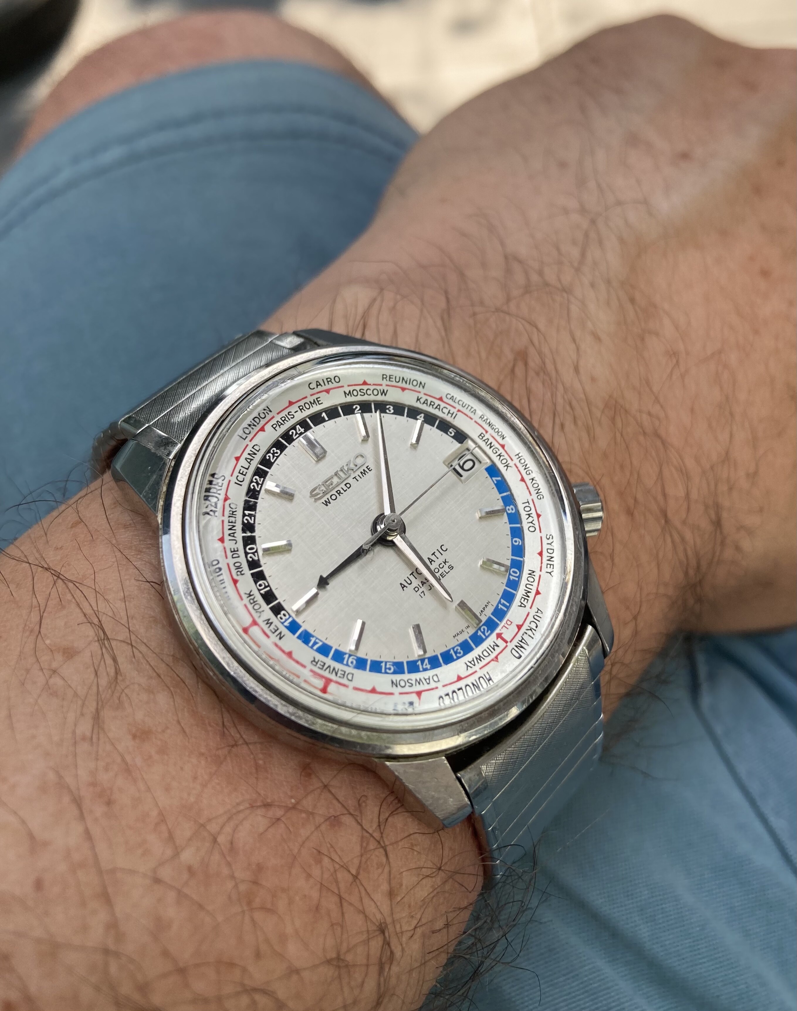 Blijft toch een intrigerend design deze, top ook met blauwe dial