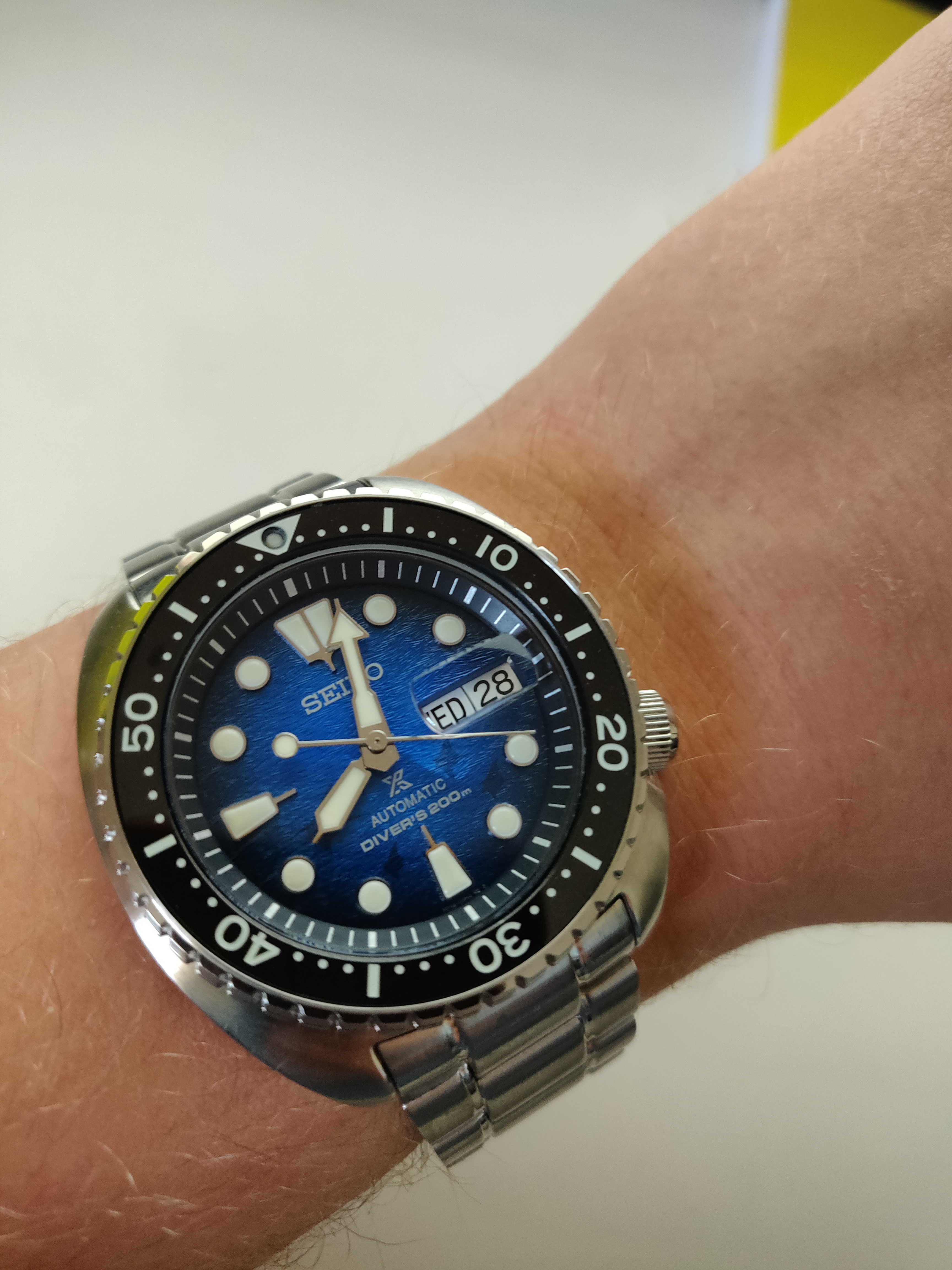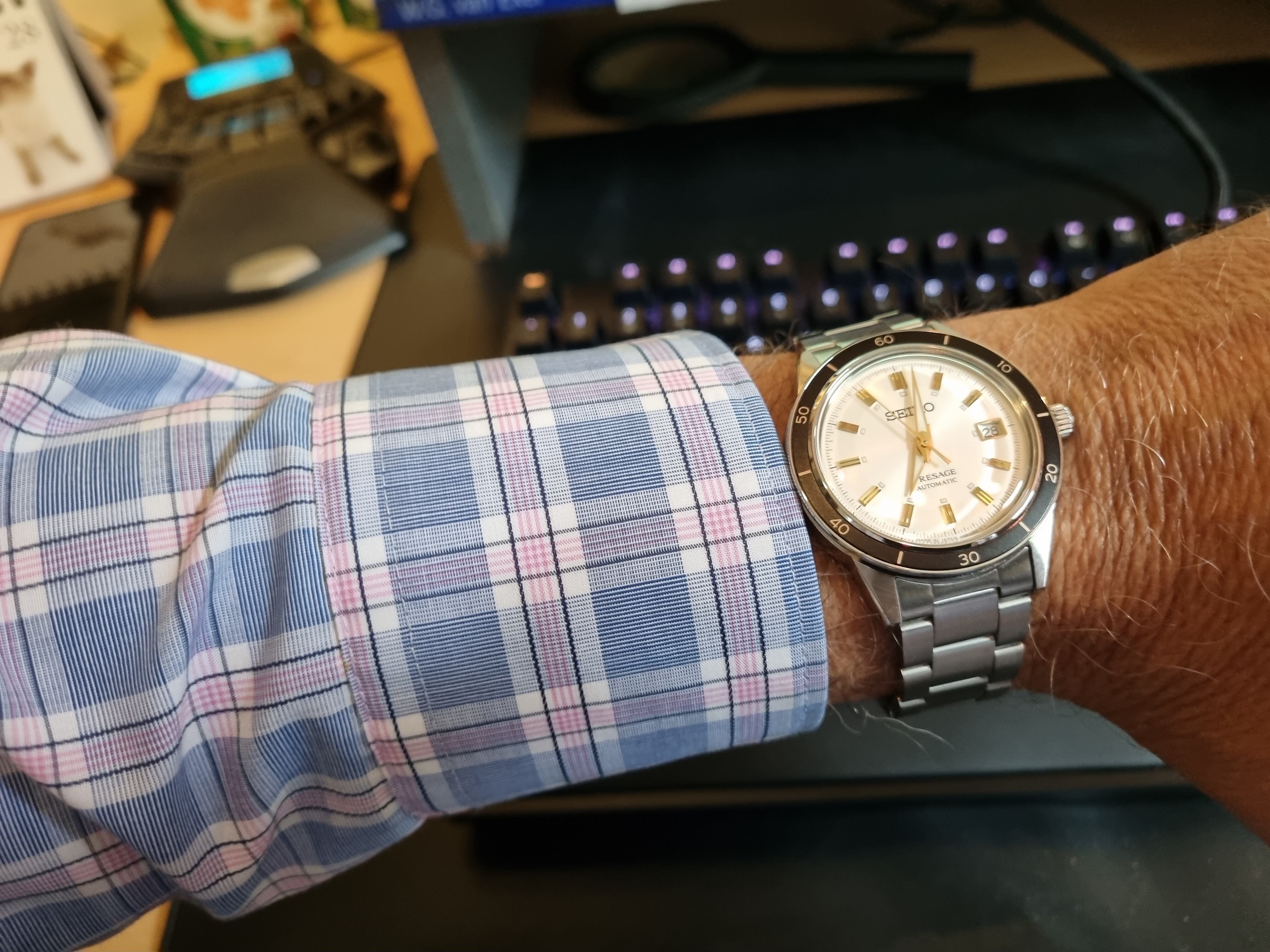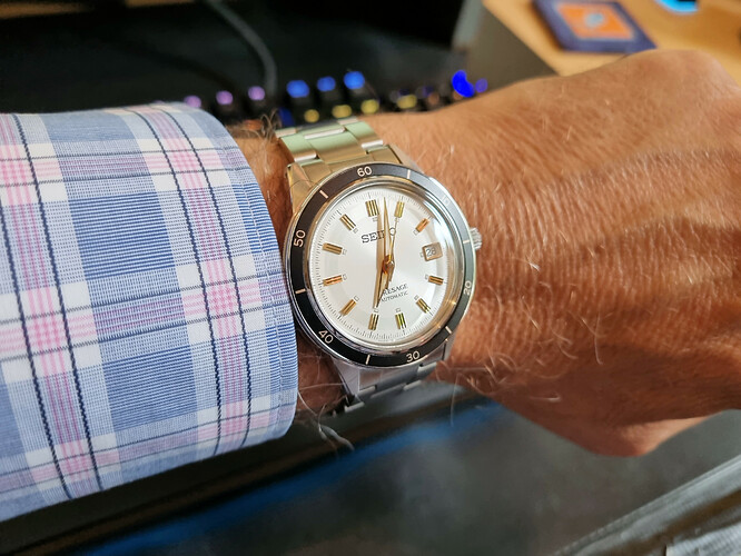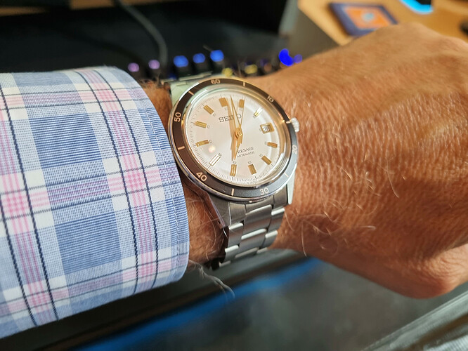 Net binnen gekregen. Ali G in da house. De rozegouden SRPE72K1. Alles is heerlijk fout aan dit horloge: de kleur, het font op de bezel.