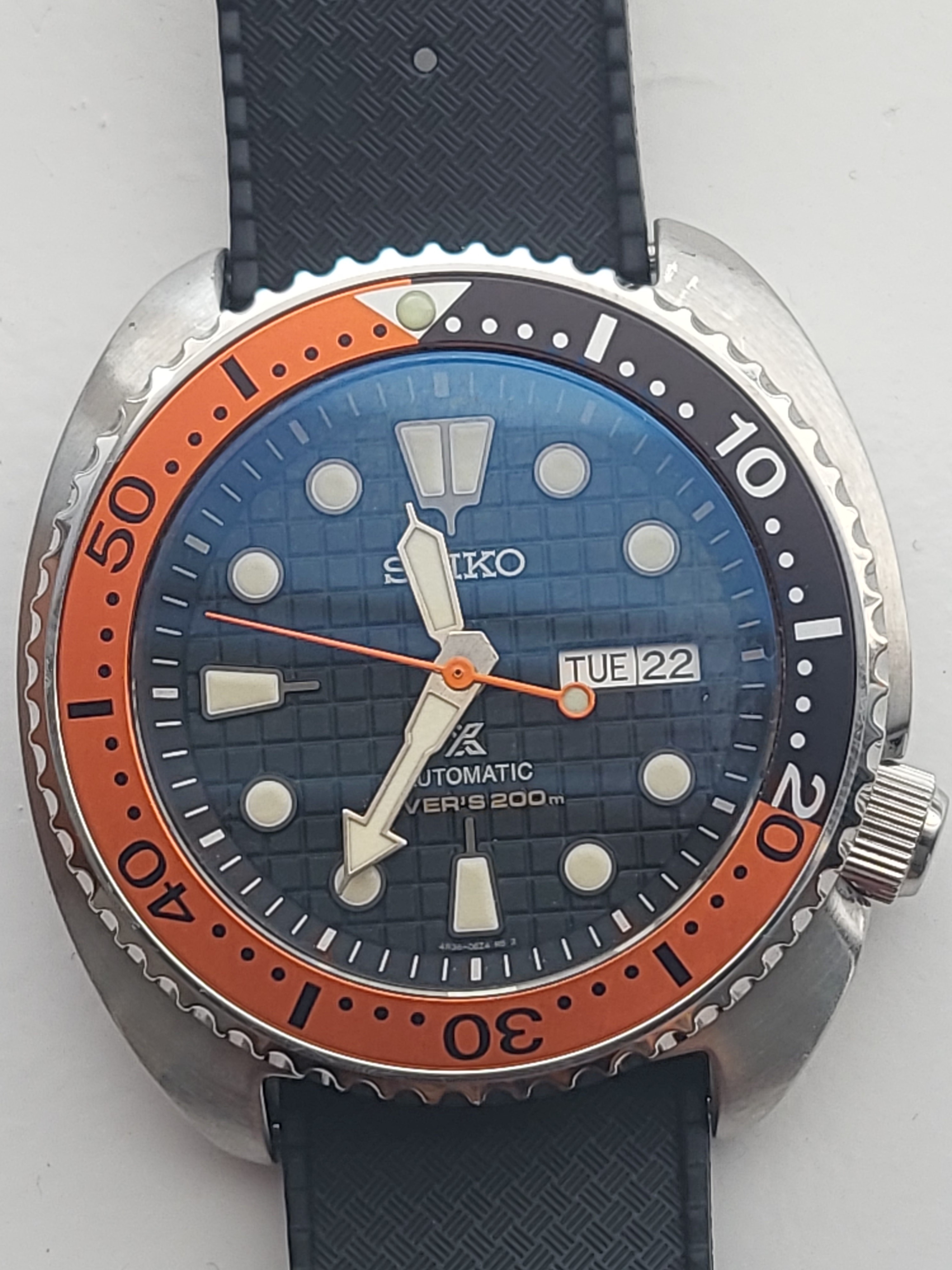 Die is ook echt prachtig! Wel fijn om te zien hoe die met een andere band staat, want hij heeft er nog eentje, alleen niet in NOS staat en niet met OEM band. Die mag voor een prikkie weg, alhoewel ik de staat van het horloge nog niet heb gezien.