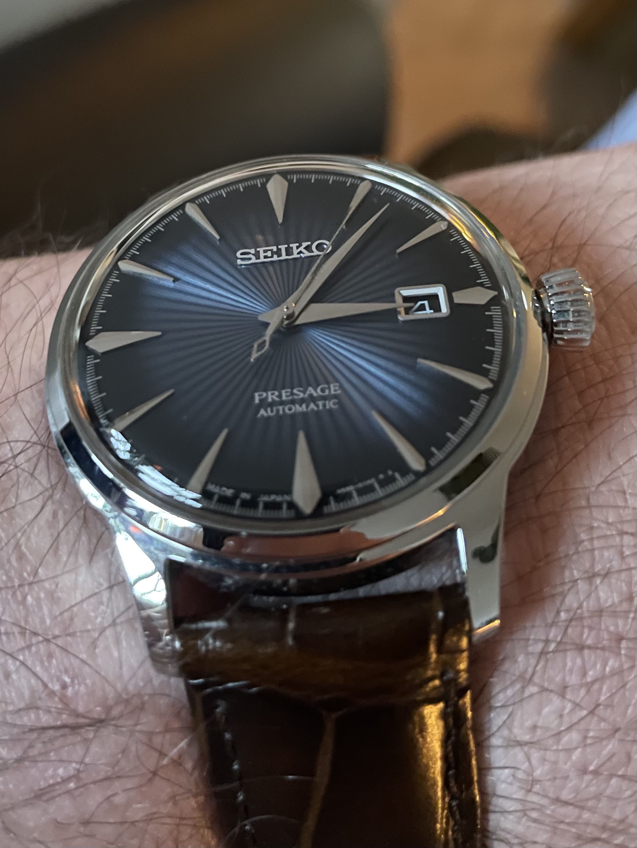 Heb niks met uurwerken of accuraat gelul, dus wat dat betreft geen problemen mee. Wel weer lekker makkelijk. En een prachtig horloge, ook die band. Maar het tikt.
