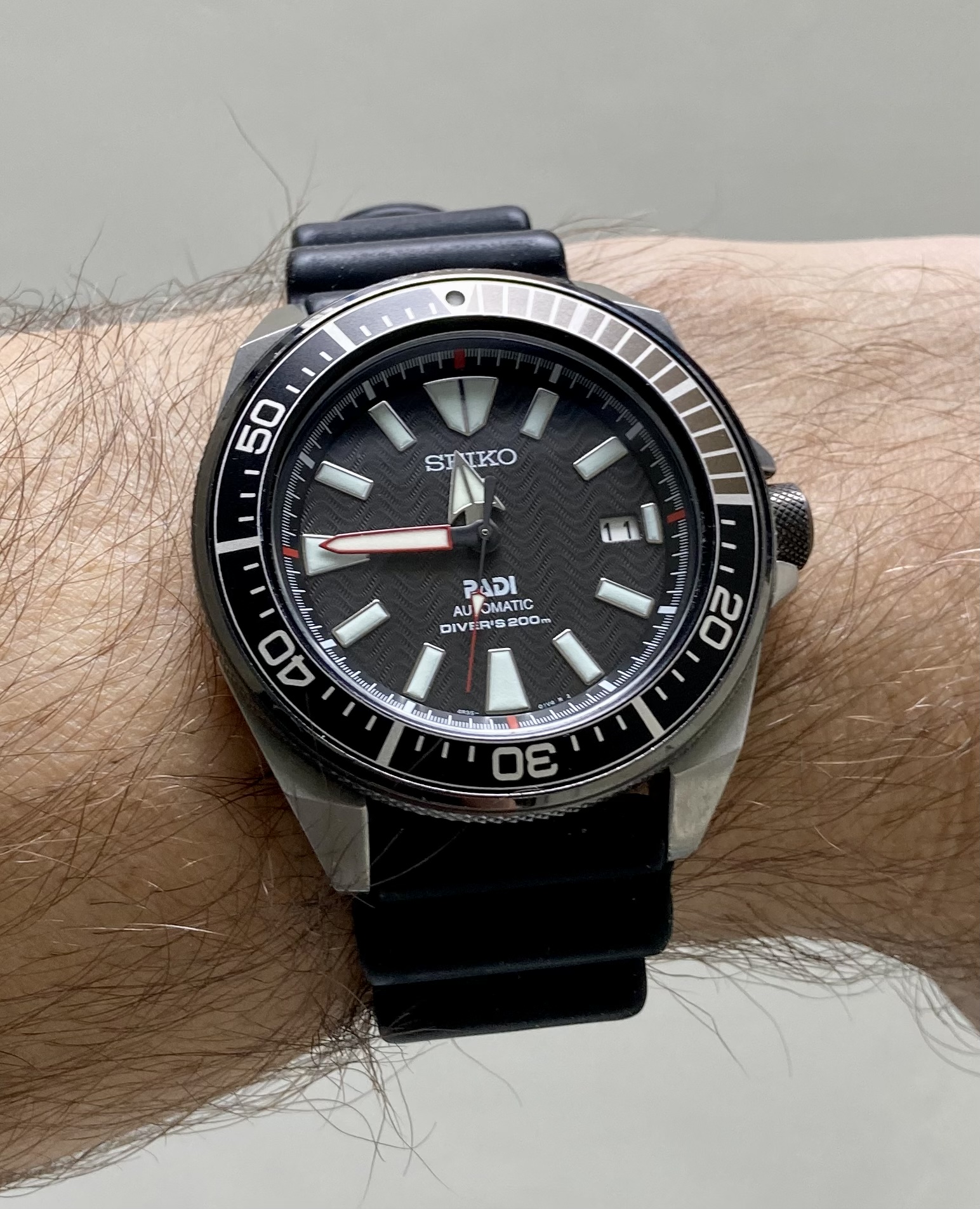 Ik het er een nieuwe rubberen band in het groen aangezet. Wijzerplaat is antraciet grijs. Lumen werken goed. Duikring draait keurig maar volgens mij iets te zwaar.