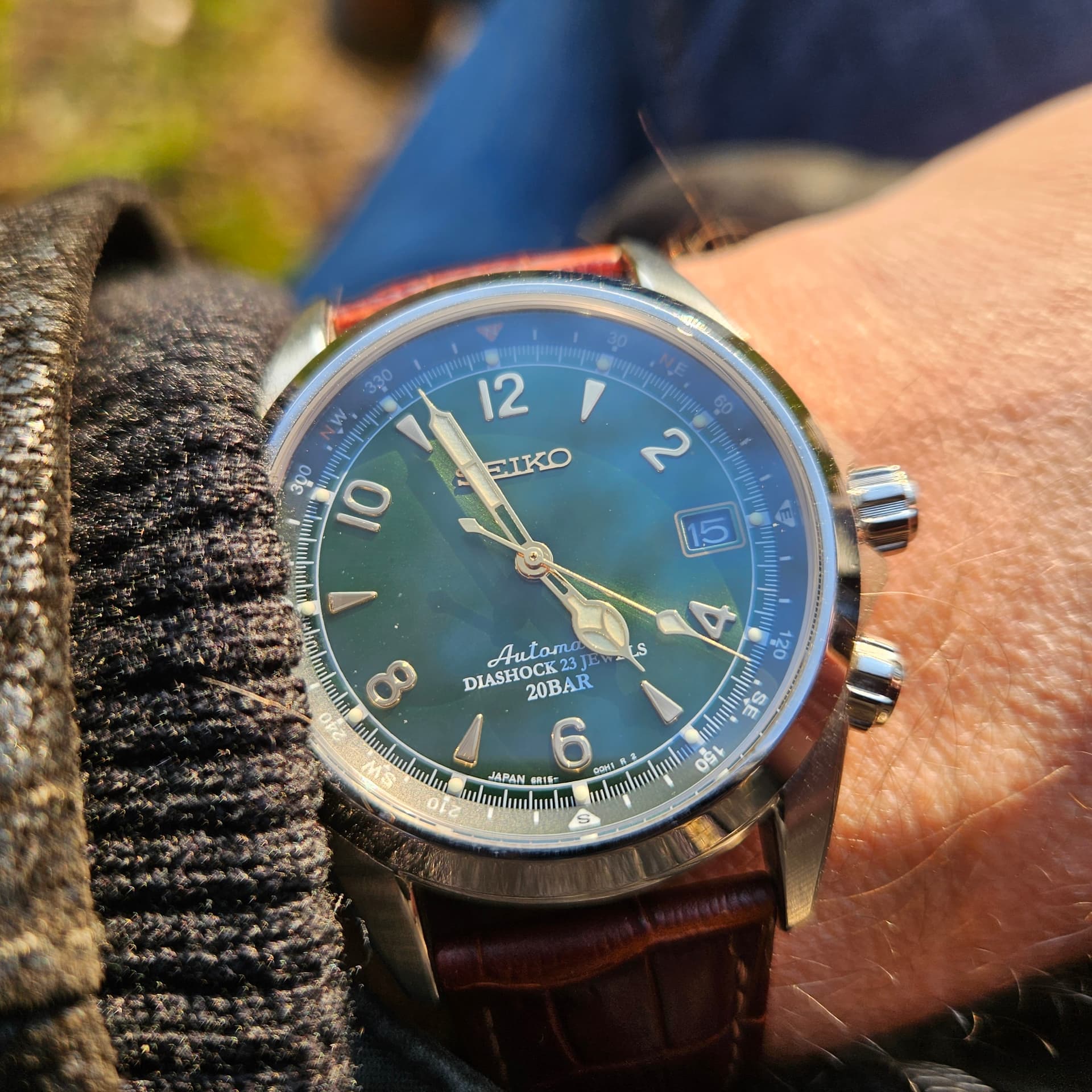 Mijn Seiko Alpinist “Night Sky” een upgrade gegeven met de Jubilee band van Strapcode. Superblij mee!