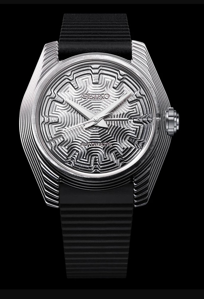 Of deze waarbij de ontwerper de kast en wijzerplaat uit één stuk heeft gemaakt om zo de schoonheid van de zgn. machining marks te laten zien.