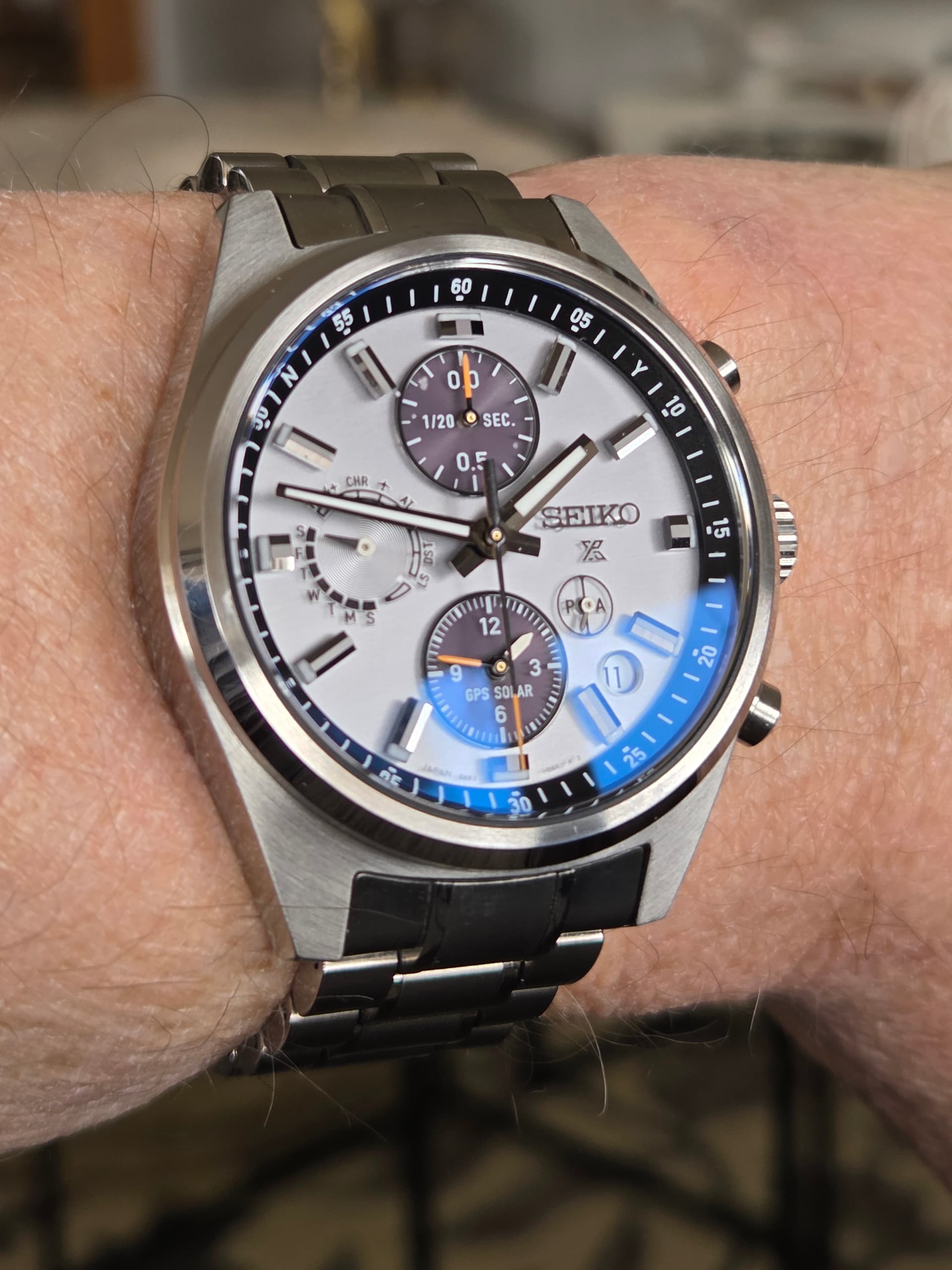Ik moet zeggen… op de foto lijken die streepjes op de wijzerplaat heftiger dan in het echt. De wijzerplaat vind ik in het echt mooier dan op de officiële foto’s van Seiko.