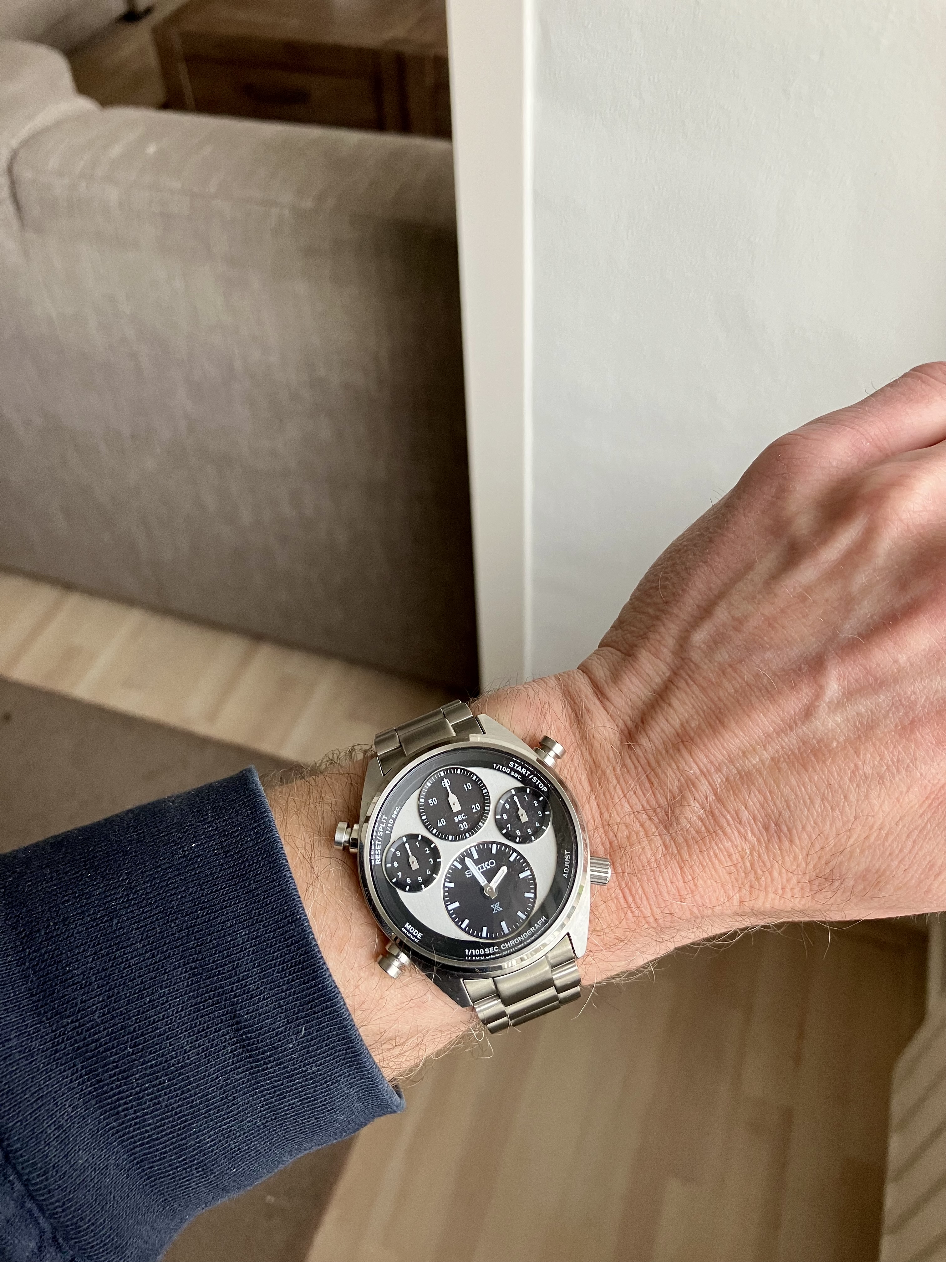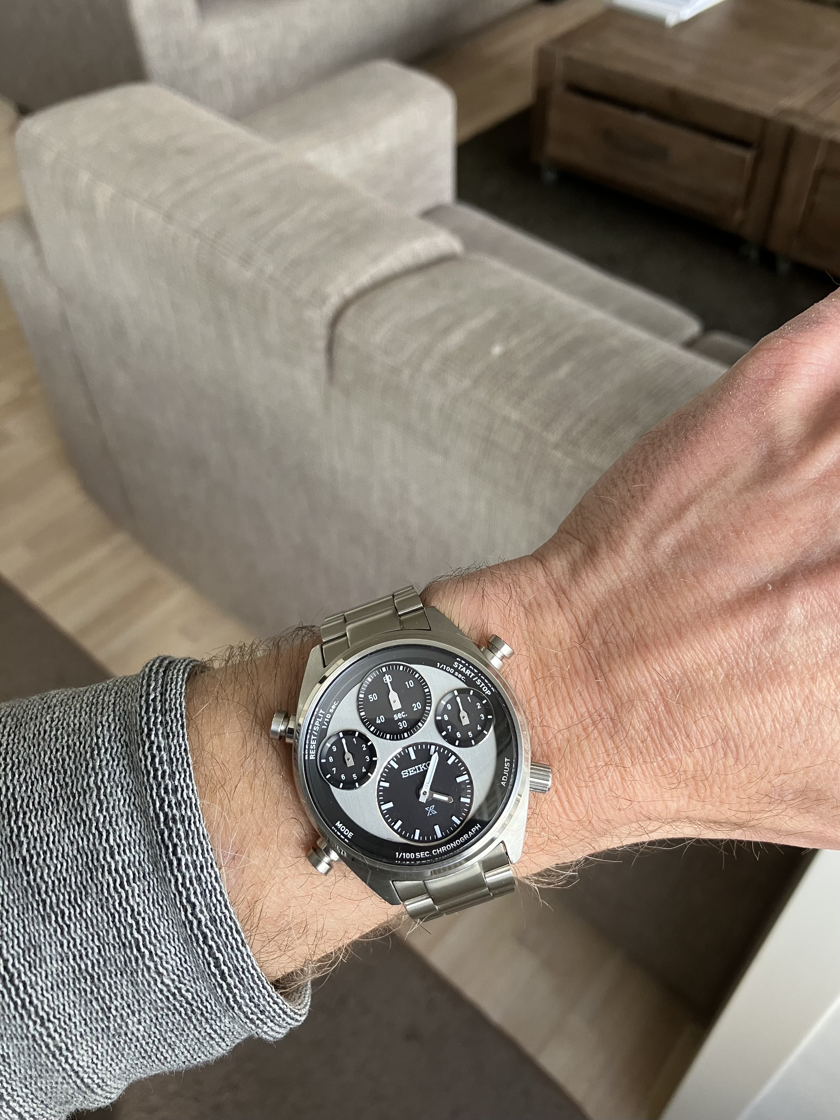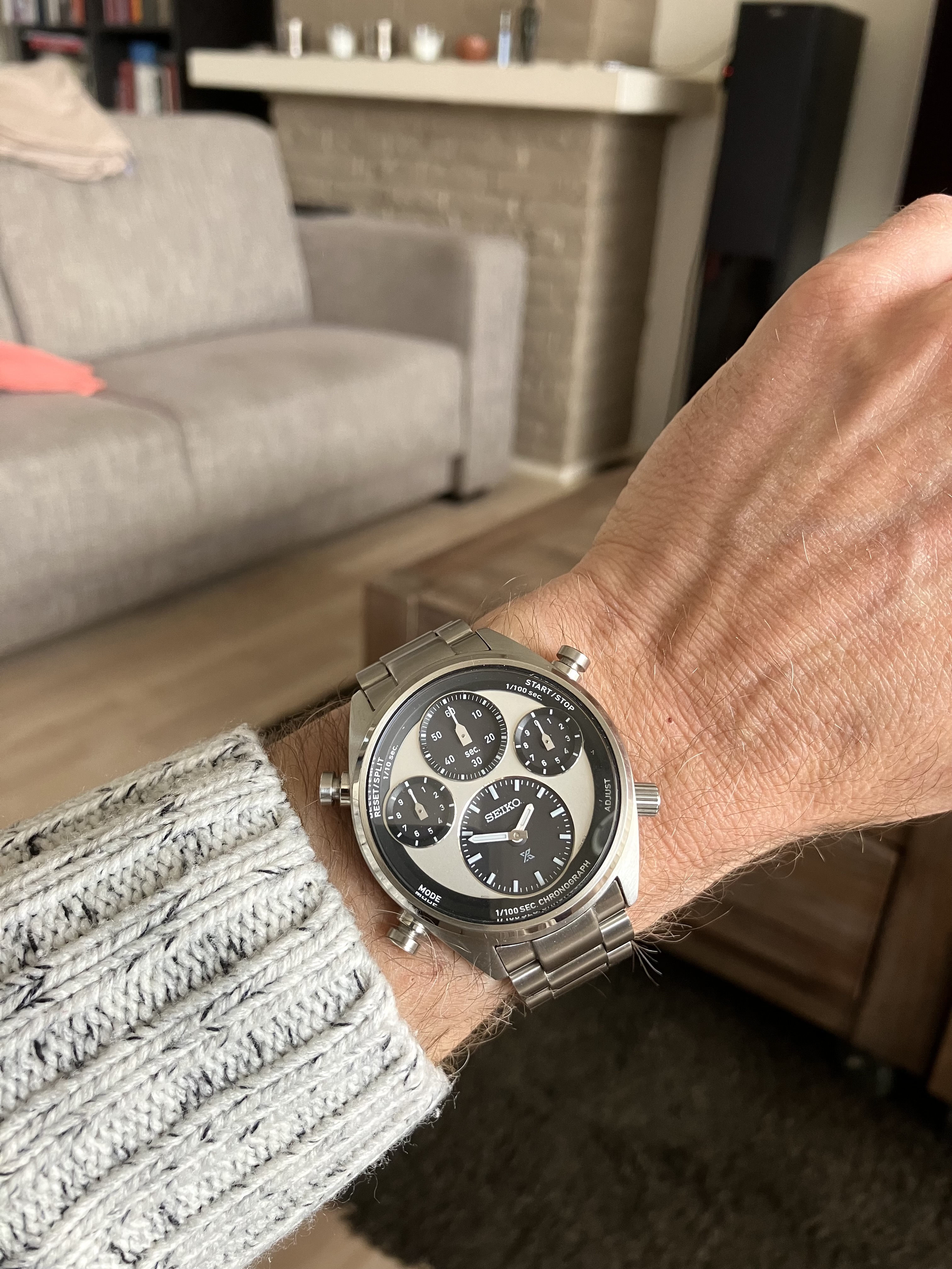 Afgelopen maanden met veel plezier gedragen. Echter ben ik een switch naar kleinere horloges (36 tm 38mm) aan het maken omdat deze voor mij persoonlijk beter om de pols liggen. Vandaar deze verkoop. Dit is een eigenwijs en brutaal ontwerp t.a.v. de andere speedtimers die Seiko recent heeft uitgegeven. Een fijne eyecatcher met persoonlijkheid.