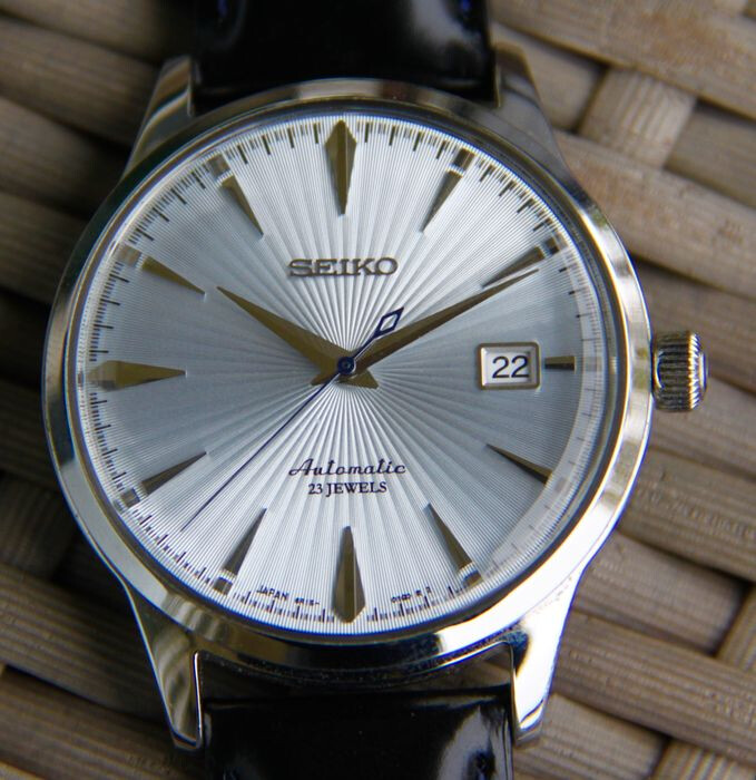 Ik heb 'm gehad, hij was mooi, maar hij deed me niks. En de secondenwijzer was niet hitte-geblauwd, wat me stoorde. Ik vind de kast van de SARB/Presage mooier op leer, die SDGM is een kille die het alleen op bracelets goed doet.