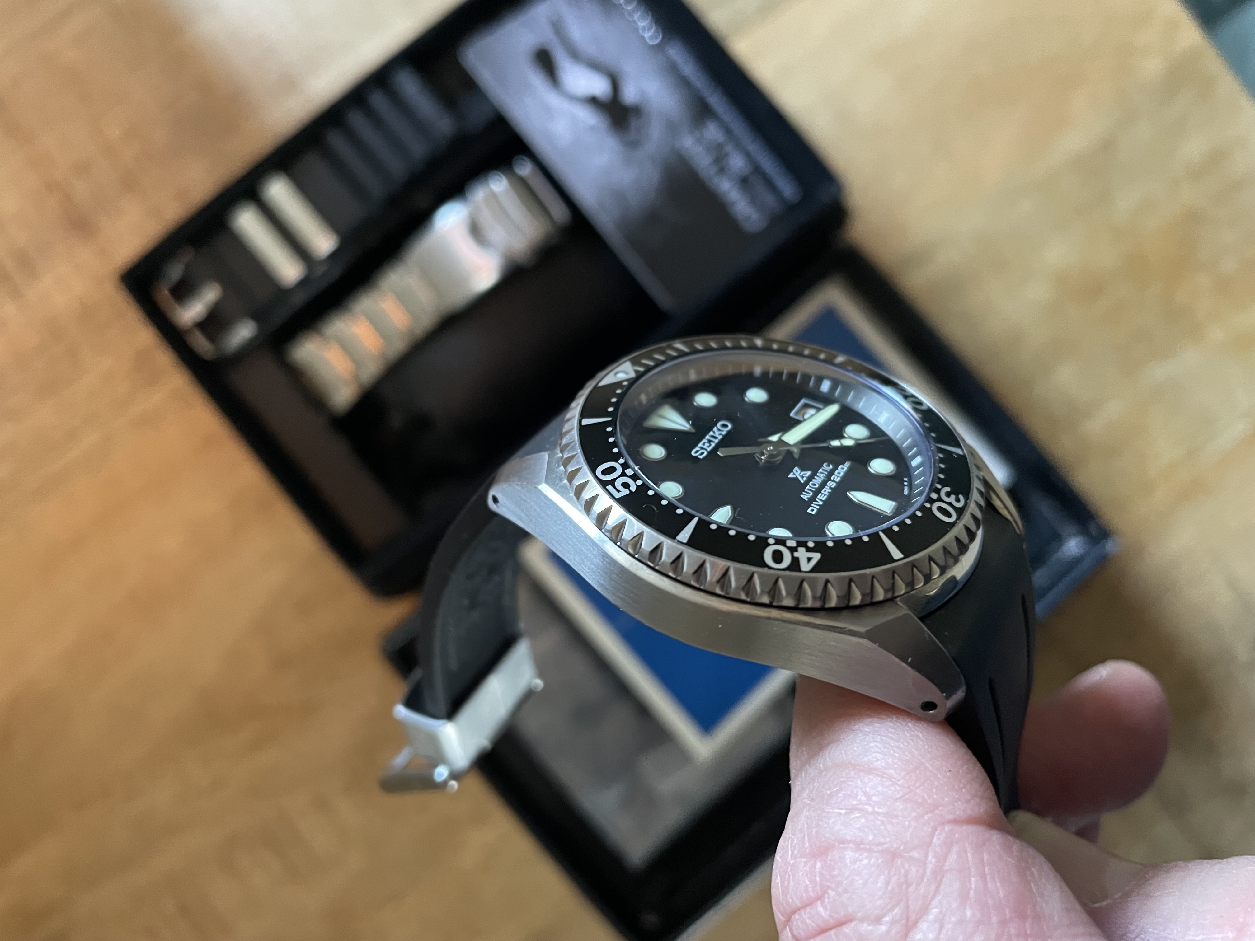 Ook deze mag eruit. Ik vind het nog steeds 1 van de mooiste duikers die Seiko gemaakt heeft en al helemaal met het domed saffier wat hier ook nog eens op zit.