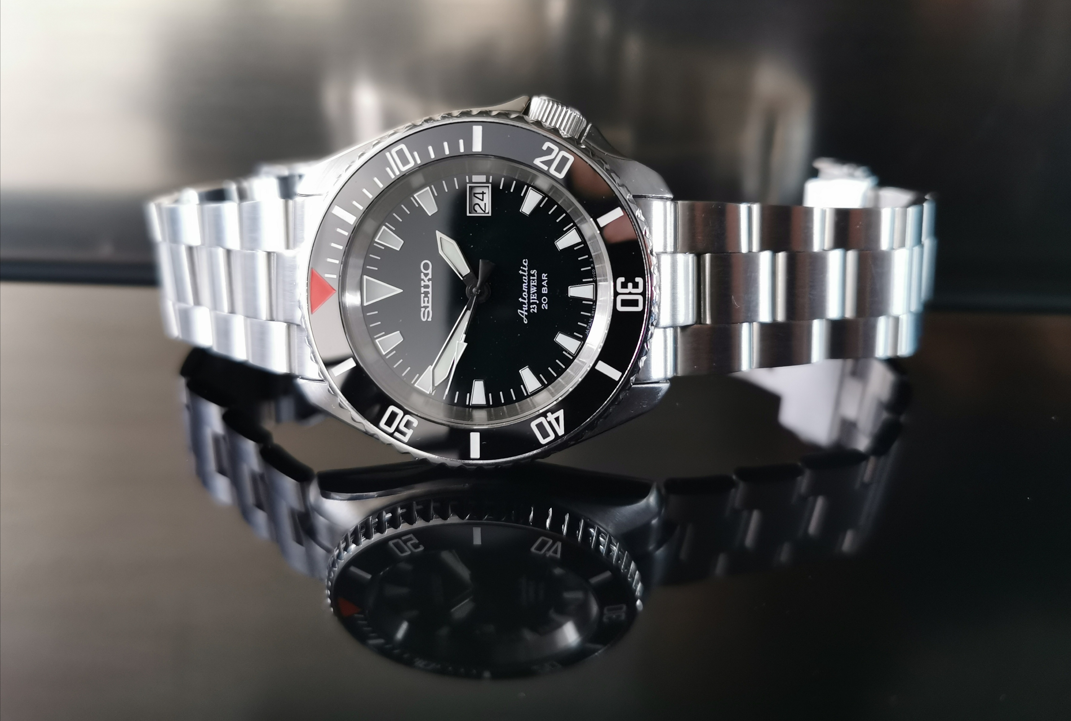 SKX is een Seiko 5 in mijn ogen. Behalve de rubberen band, voldoet hij aan alle Seiko 5 kenmerken. Niet voor niets zit er (in ieder geval wat ik weet) bij de J-versie een papieren label op de band met ‘Seiko 5‘ erop vermeld, wanneer je hem nieuw uit de doos haalt.