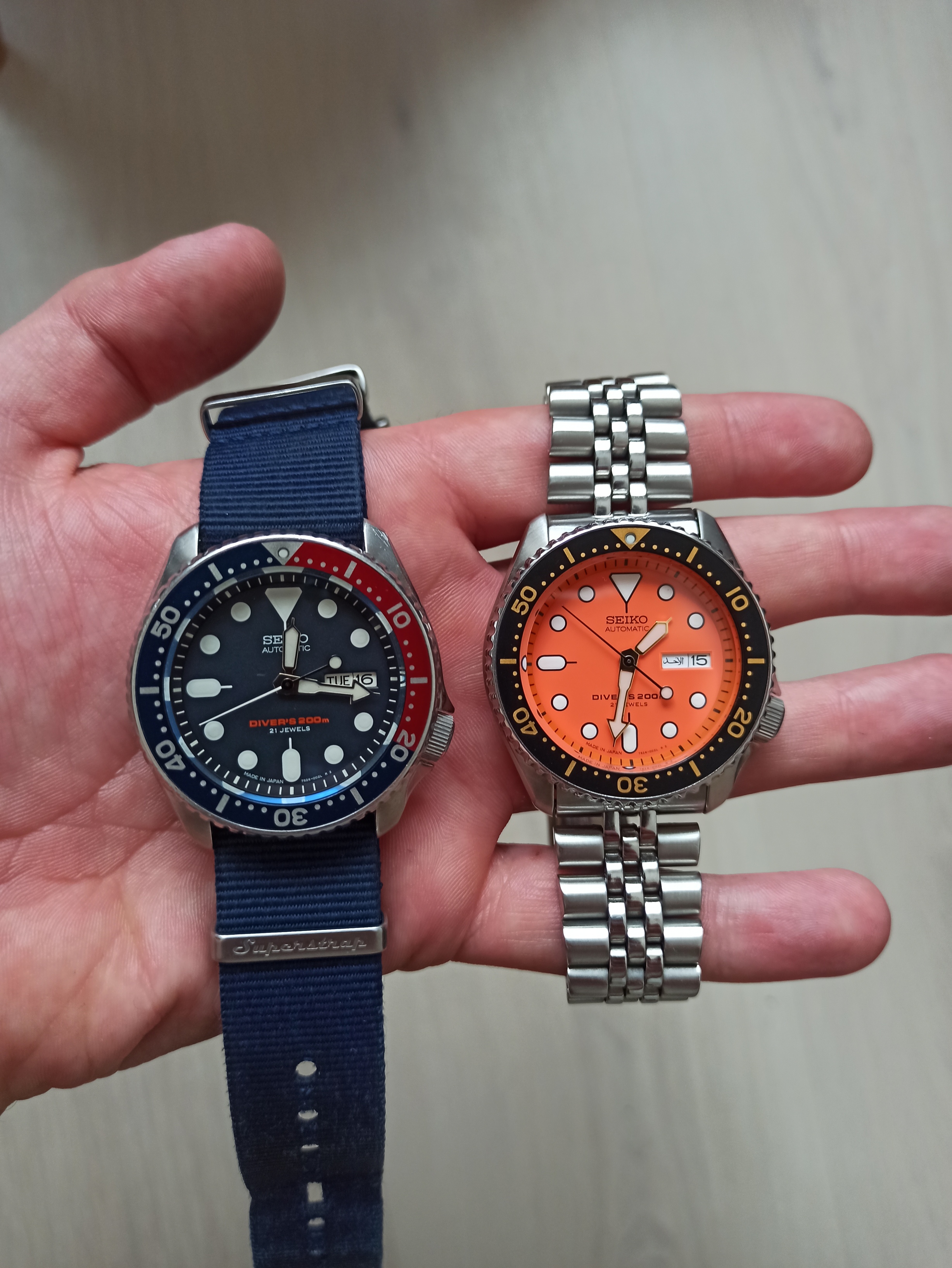 Grappig. Ik heb een J versie (de rechter bezel) en 2 losse bezels van SKX-en die (volgens mij) van K versies komen. Die hebben beide net iets andere ribbels (linker bezel op de foto). De grap is dat die 2 losse bezels beide niet op mijn J kast passen! Zitten te strak, kunnen niet draaien. Daarom dacht ik dat er een verschil was tussen K en J bezels.
